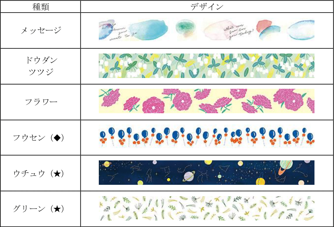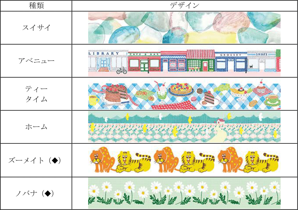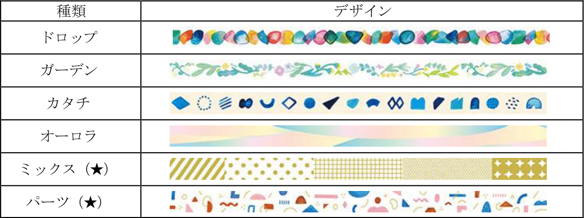 最も要望が多かったという10mm幅タイプは、手帳の隙間を埋めたり、写真のフレームとして使うなど、細かい部分にも使いやすく、幅広いデコレーションが可能です。税別価格は300円(※10mm幅箔押しタイプは税別340円)。