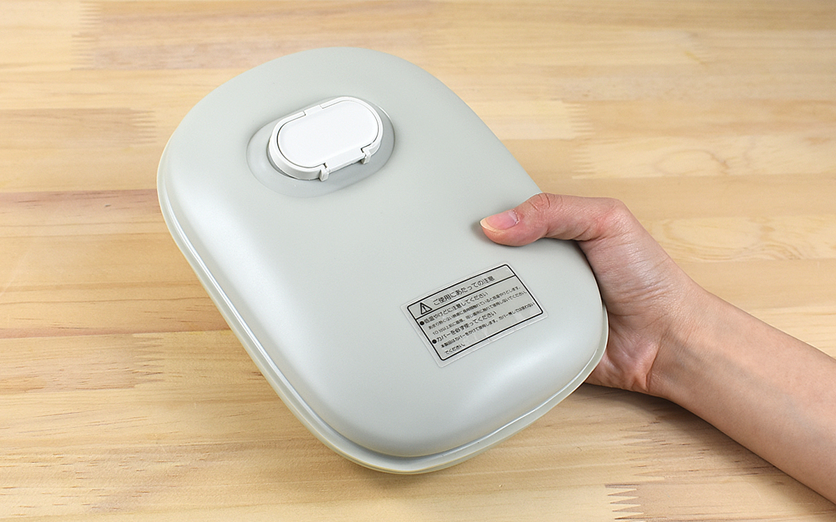 従来の湯たんぽはプラスチックや金属製のタンクがほとんど。一方同商品は、その名前が示すとおり本体にシリコンとABS樹脂を使用しているのが特徴です。ちなみに本体のサイズは21.5(幅)×14.5(奥行)×6cm(高さ)。既に水が入っている状態とはいえ、コンパクトなので持ち運びに苦労しません。