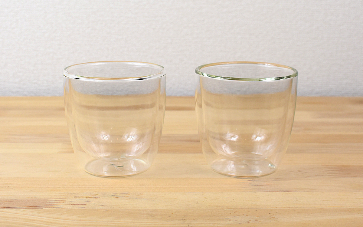 “ダブルウォールグラス”とは、ガラスが内側と外側で二層になっているグラスのこと。2枚のガラスの間に空気が入っており、結露を防いでくれます。さらに熱い飲み物は冷めにくく、冷たい飲み物はぬるくなりにくいのが魅力ですよ。