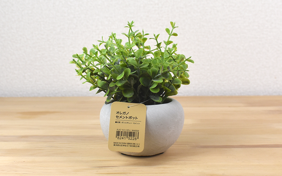●水やりいらずで手入れ簡単な「フェイクグリーン セメントポット オレガノ(HA45502)」(ニトリ)