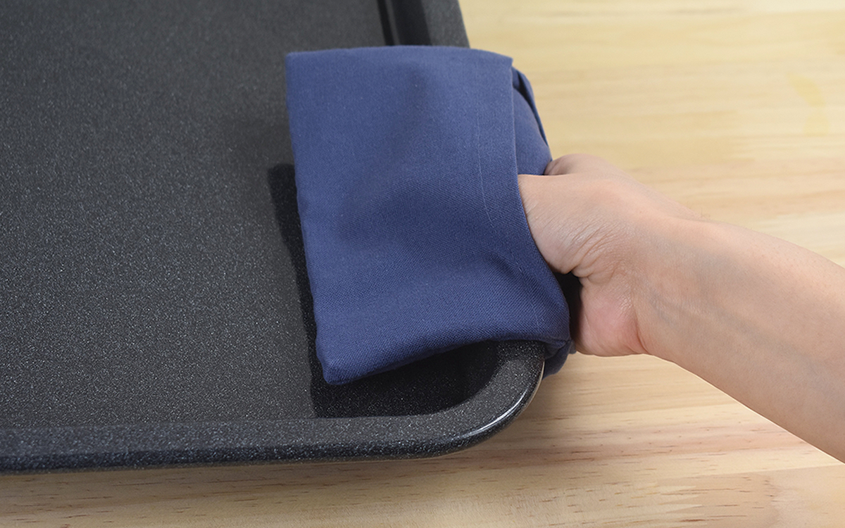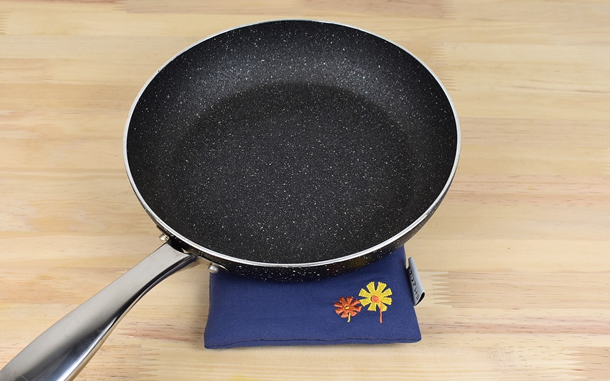 中のクッションに厚みがあるため、調理器具の熱からしっかり肌を守ってくれるのがGOOD。また鍋敷きに使えるので、テーブルを傷つけずに済むのもうれしいポイントです。ちなみに、ミトンには吊り下げに便利な紐の輪もついているので、キッチンの壁面にぶら下げておけばいつでもサっと使えますよ。