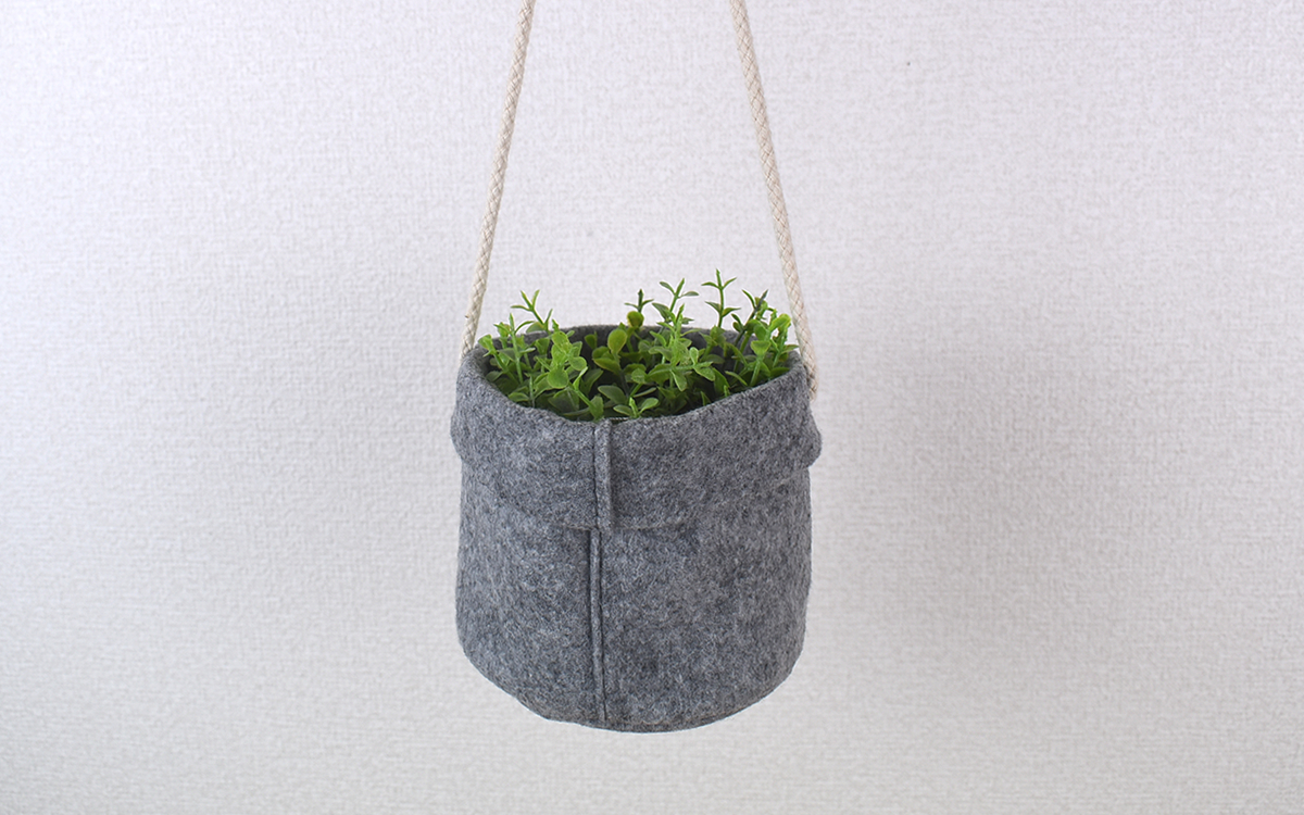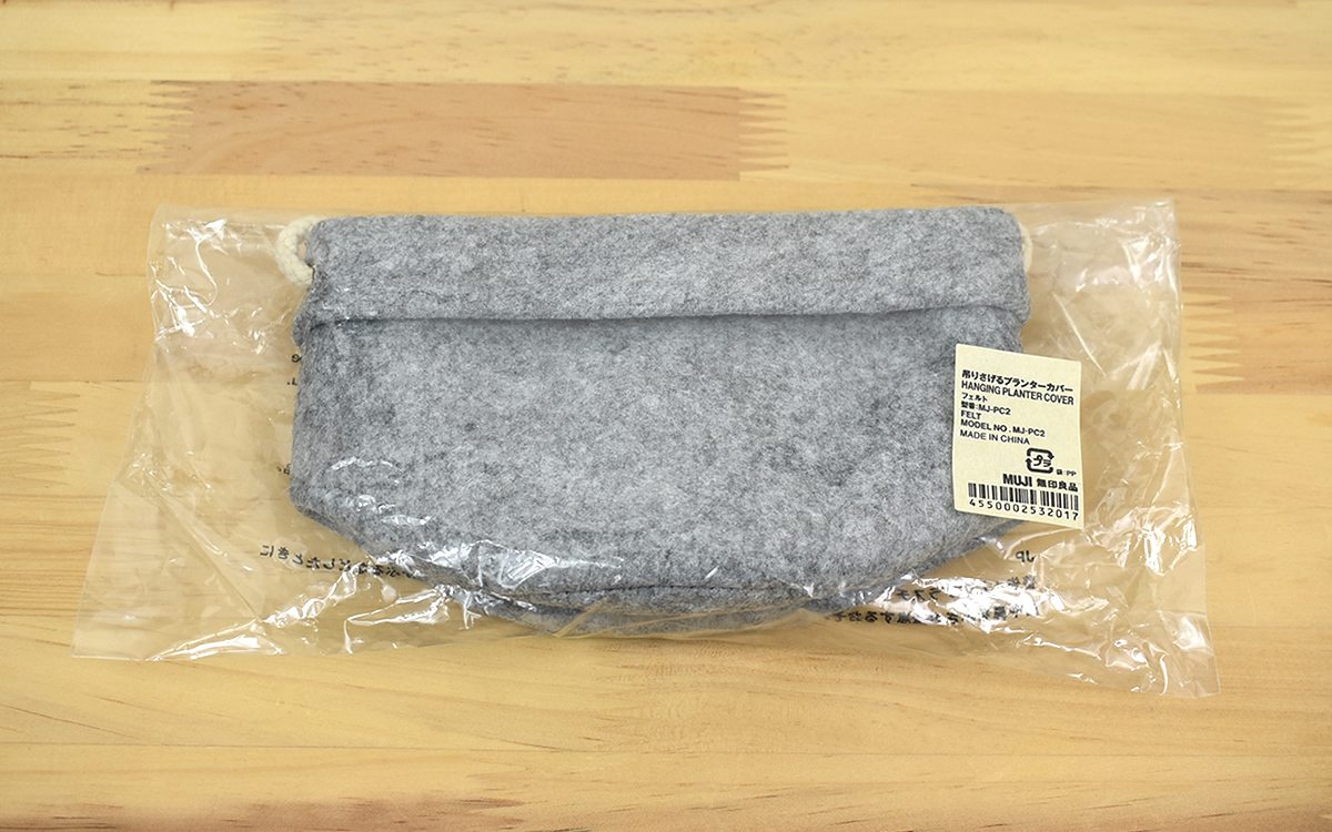 ●室内になじみやすい色合いの「吊りさげるプランターカバー(フェルト)」(無印良品)