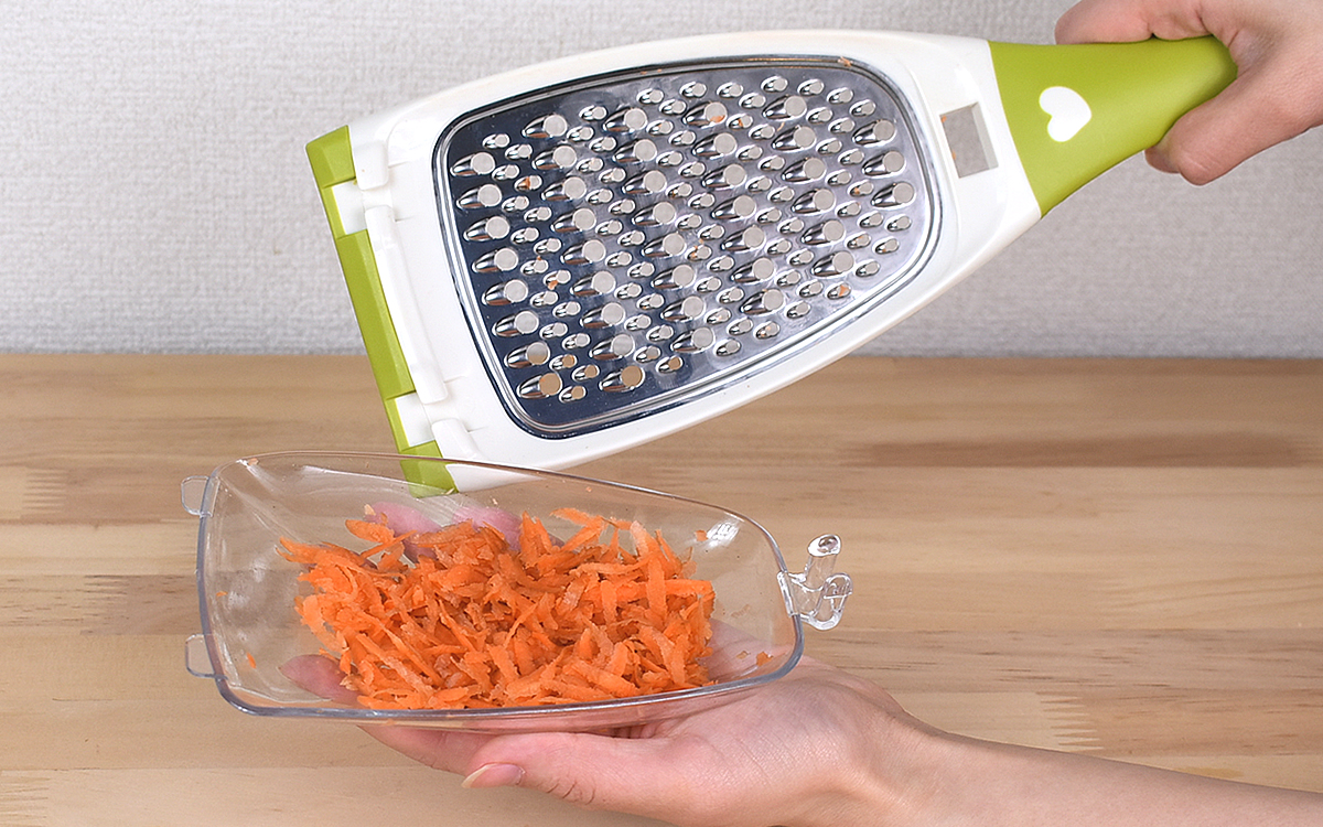 さらに取り外し可能な“専用トレイ”も大活躍。周囲にこぼすことなくおろせる上に、そのままサっと皿へ移動できるので時短にもつながりますよ。