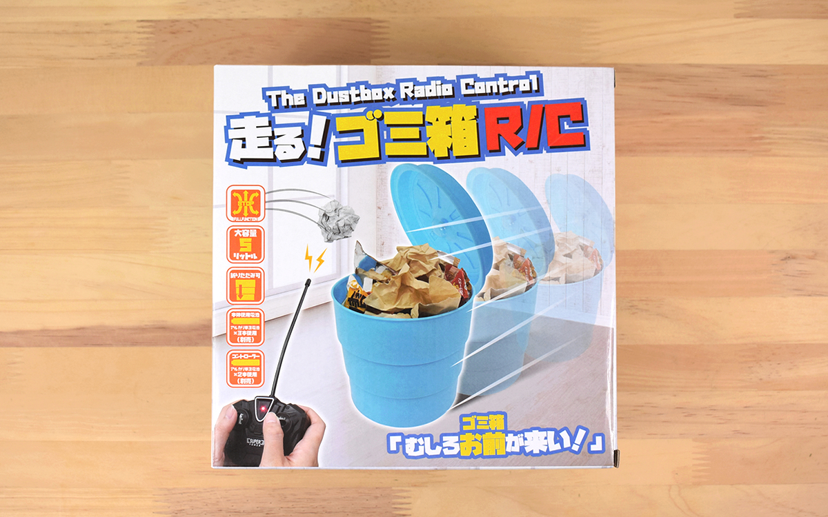 みなさんはベッドでゴロゴロしていて、ゴミ箱に向けてポイっとゴミを投げた経験はありませんか? そういう時に限ってゴミ箱に届かず、起き上がって拾いに行くのがお決まりのオチ。かくいう私も、「ゴミ箱がもっと近くにあれば…」と苦い思いを何度したことか。そんな思いをせずに済むアイテムが、今回セレクトした「走る! ゴミ箱 R/C」(1680円/税込)という商品です。“走るゴミ箱”とはいったい?