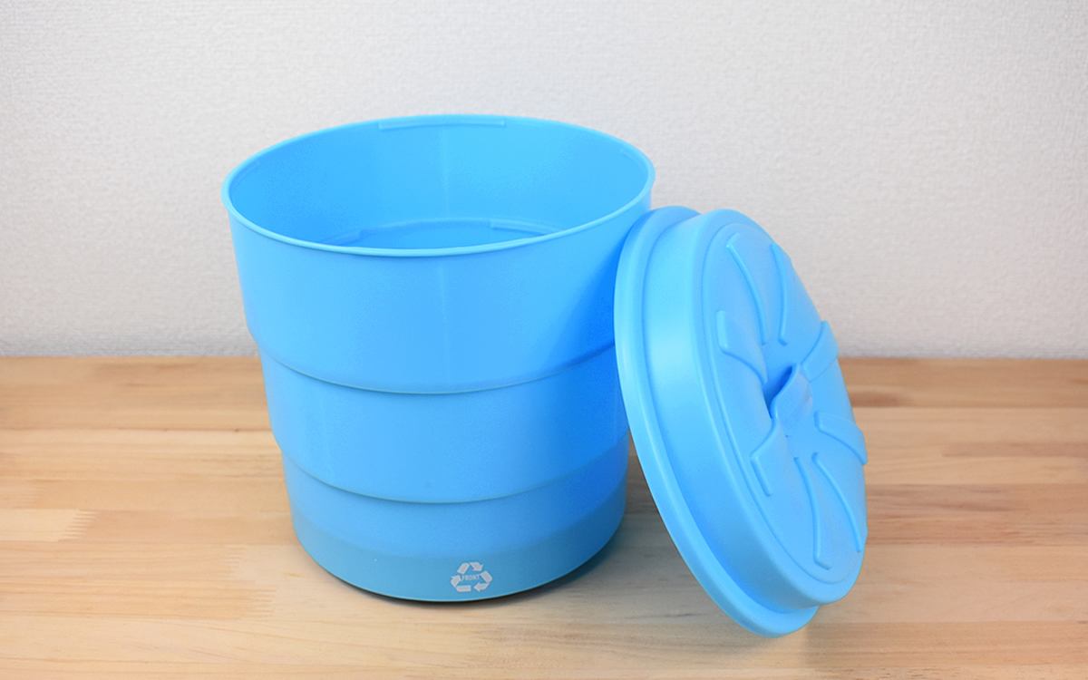 本体をパっと見て「ゴミ箱にしては小さいのでは?」と疑問に感じるかもしれませんが、もちろん容量の点も問題ナシ。同商品はたためるようになっていて、本体を伸ばした状態なら5Lの大容量を誇ります。ゴミ箱を使用しない時、コンパクトにたたんでおけるのも便利な点ですよね。