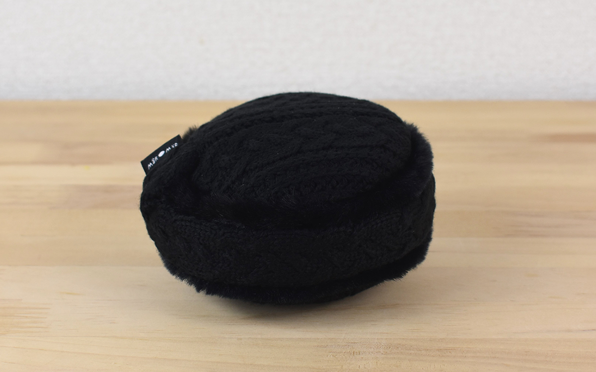 同商品の特徴は、ヘッドバンドを引っ張って長さを変えられる点。さらに軽く捻ると両側の根元を直角に曲げることが可能です。また、耳をあてる部分はニットで編まれた布地になっており、あたたかみのある素材感がGOOD。耳に直接当たる内側部分はフワフワとしたファーのやわらかい手触りが楽しめますよ。