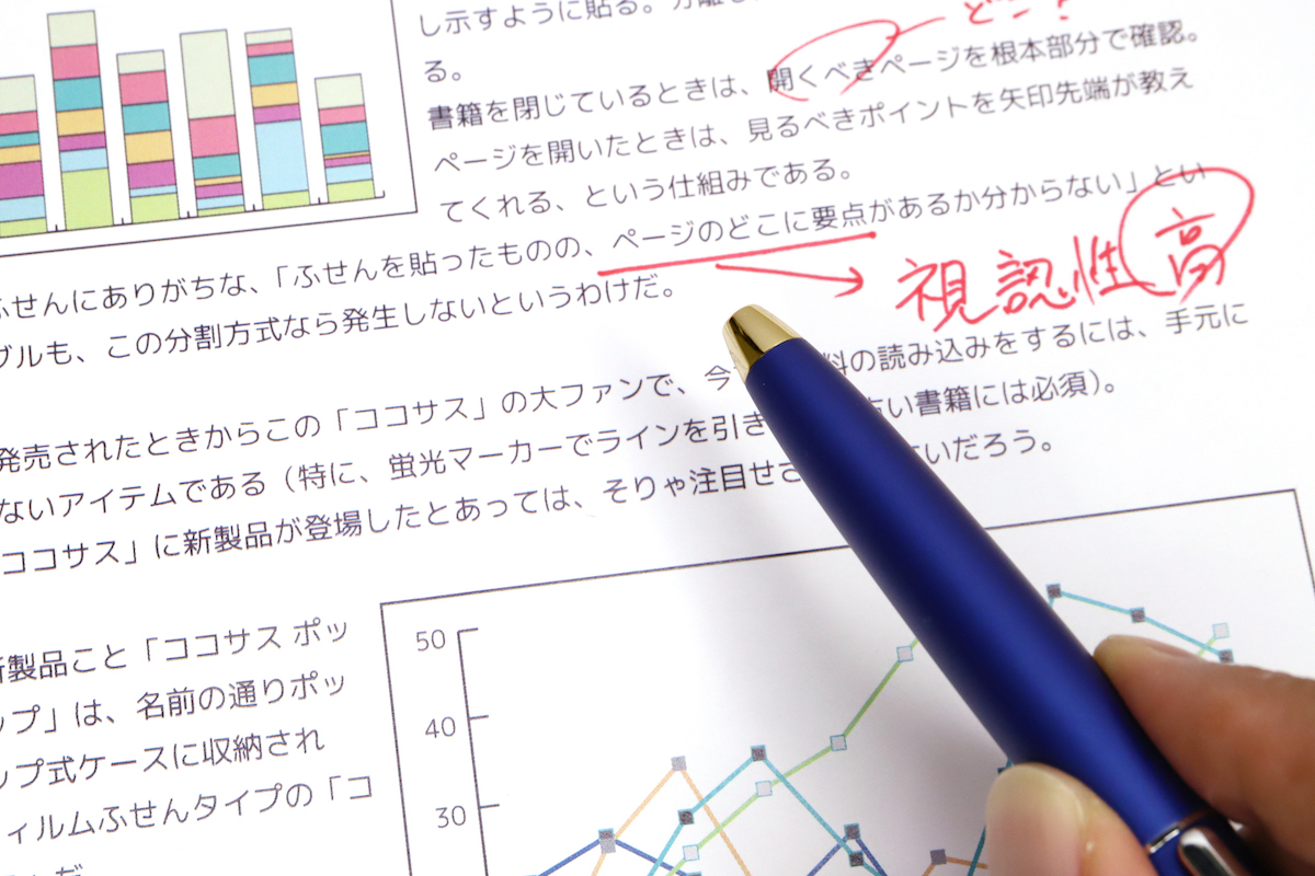 ところで、なぜ「説明や指示出しにサインペン」なのか? というと、これは簡単。筆記線がボールペンよりも圧倒的に太くてハッキリしているからだ。