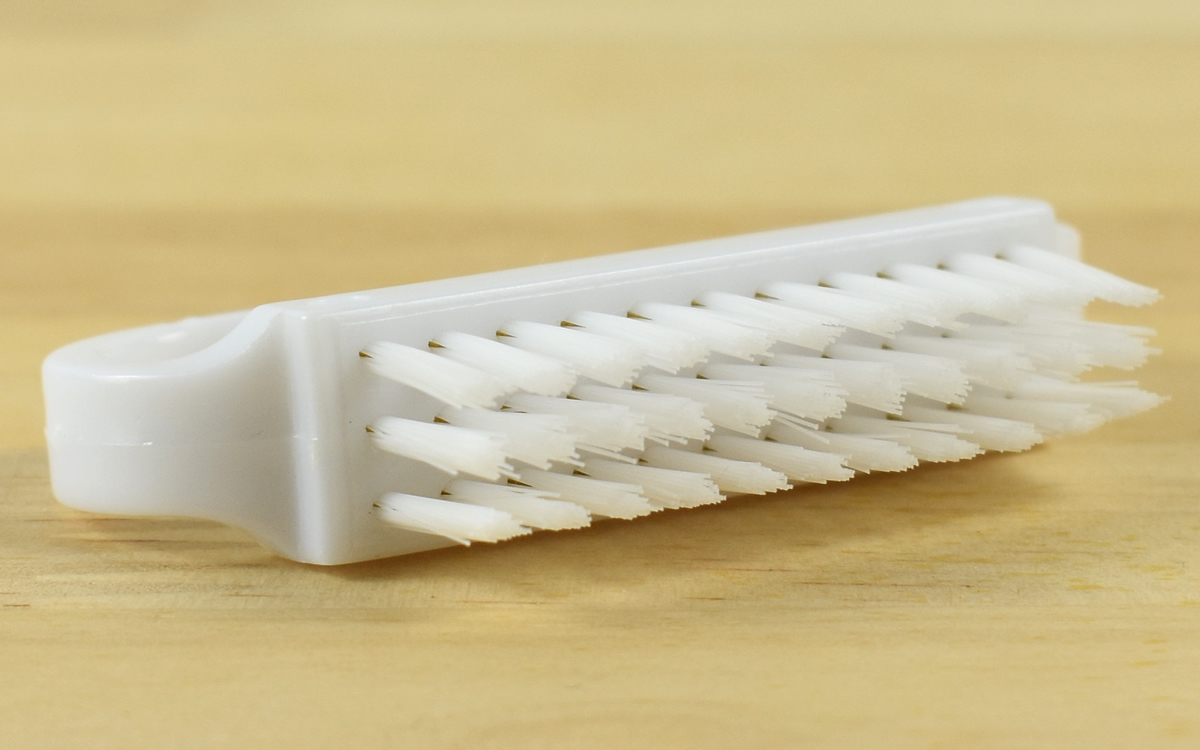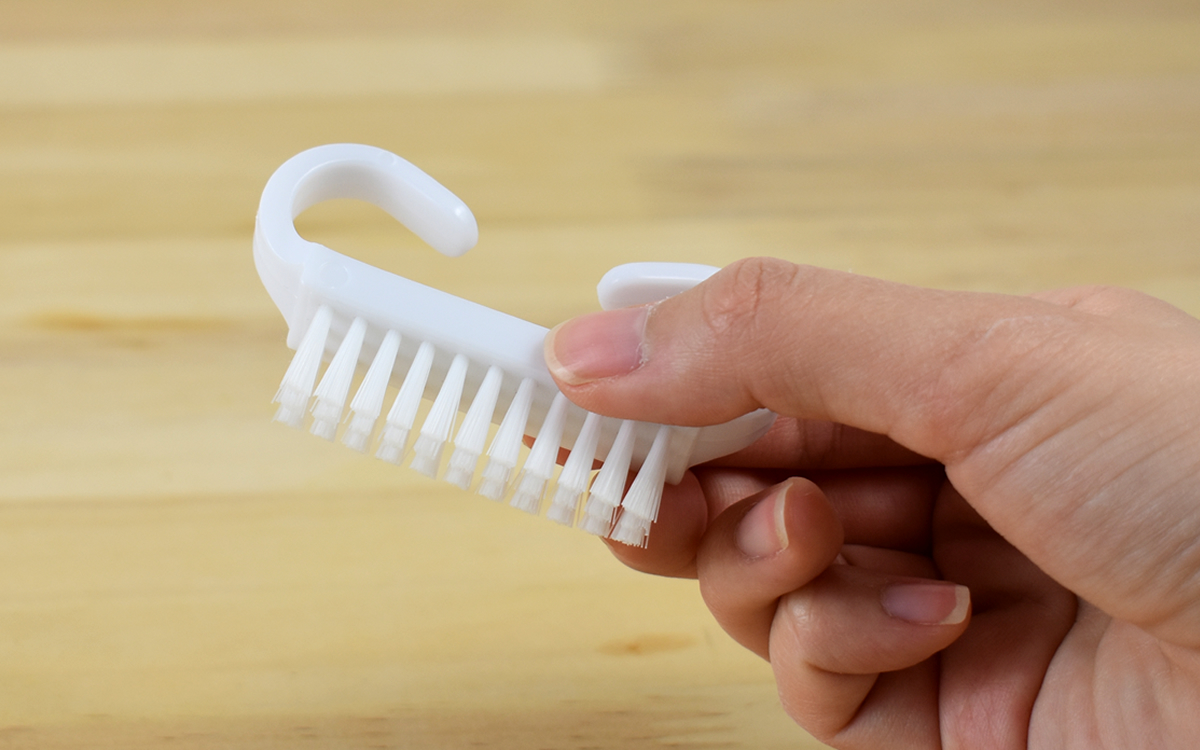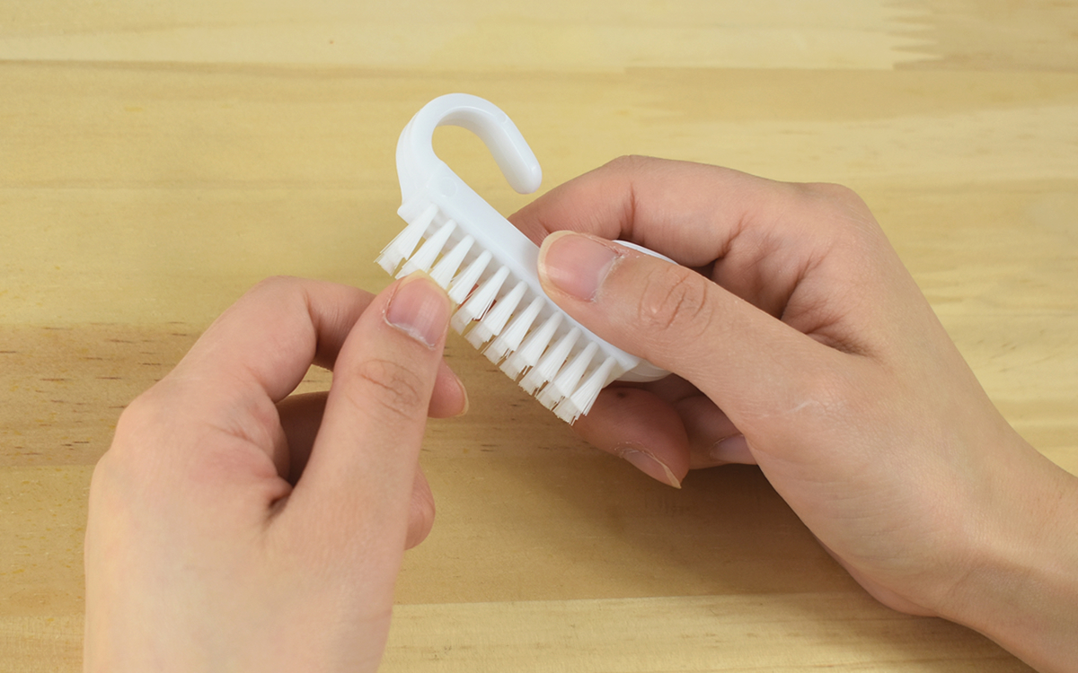 実際にブラシを使用してみたところ、細かいブラシの毛先が爪の隙間にジャストフィット。ブラシ全体の感触は柔らかく、ゴシゴシこすってもほとんど肌に痛みを感じません。また、カーブした持ち手のおかげでブラシがすべらず、しっかり汚れを落とすことができました。