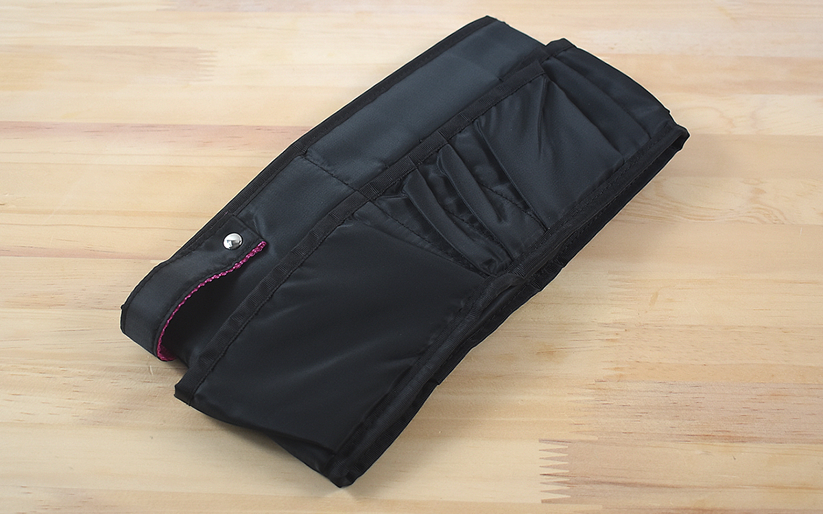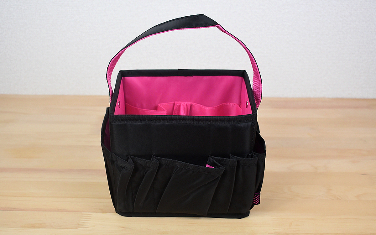 同商品は内側だけにとどまらず、外側に備えられた複数のポケットも注目ポイント。ポケットの幅はそれぞれ異なっているので、ペンシルアイライナーなどの細かい小物もしっかり分けられますよ。