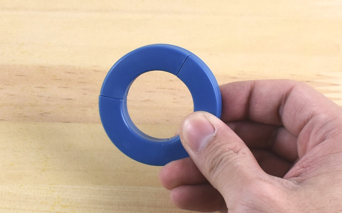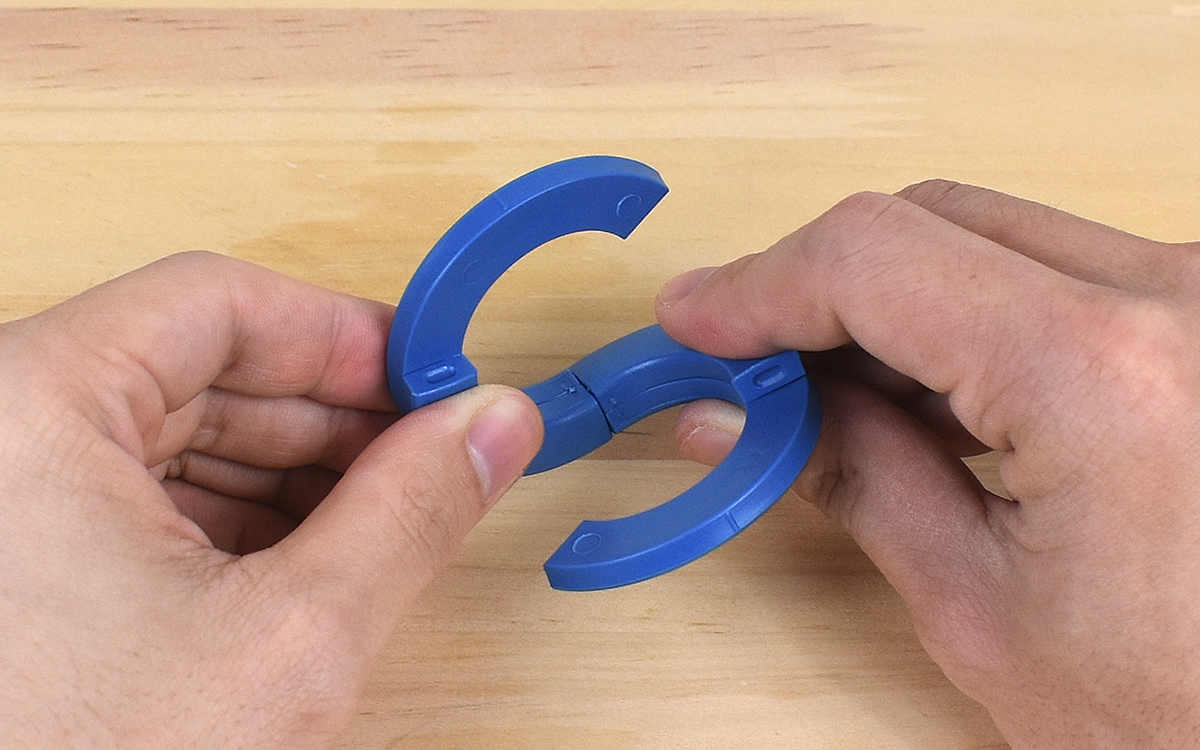 さらに同商品は、S字からO字に変形させられるのが最大の特徴。S字の中心を折ると、段差になっている部分がパチンとはまってO字型になります。