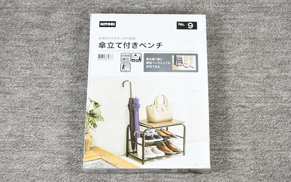 シューズボックスや傘立てなど、何かとスペースを奪われがちな玄関。帰宅して最初に目にする空間なので、「なるべくすっきりした状態を保ちたい」と考えている人は多いと思います。そこで今回は、ニトリで販売されている「ベンチ クロチェット」(4064円/税込)に注目。この目で実力を確かめるべく購入してみました。