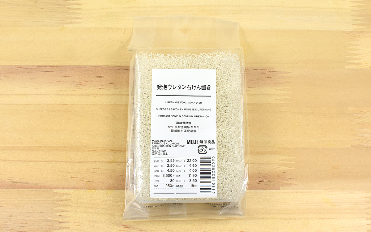 洗面台の掃除をしていて、石けん置きの“ぬめり”が気になった私。手洗いの頻度が増えているだけに、ぬめぬめした石けんや石けん置きに触れると不快に感じてしまいますよね。そんな問題を解消すべく、ネット上で評判のいい無印良品の「発泡ウレタン石けん置き」(250円/税込)という商品を購入。さっそく使い心地を確かめてみました。