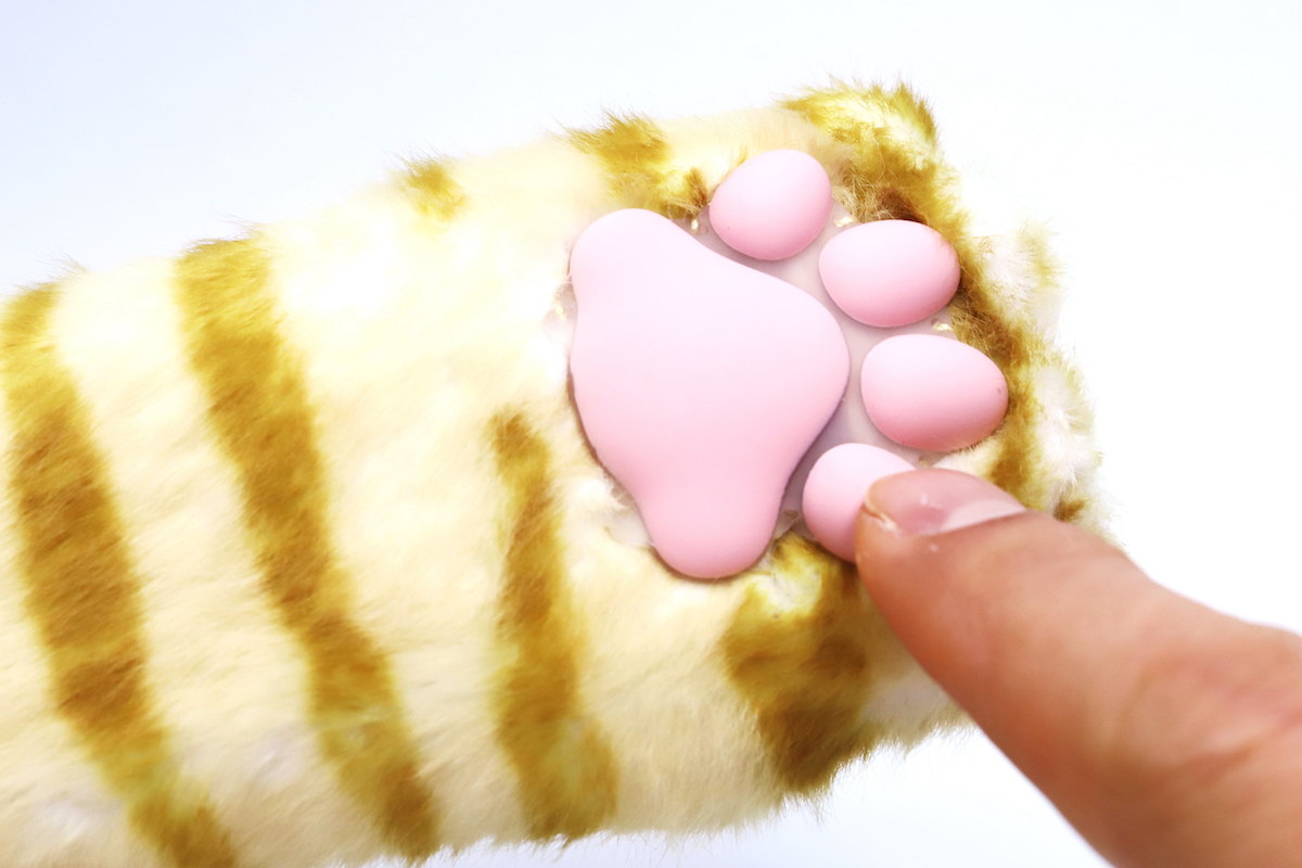 要するに、猫の手形のペンケースなのだが、サイズ感がちゃんと程よく実物大。ふわふわとした毛並みの手触りも、それなりにリアルだ。もちろん手のひらにはぷにっとしたシリコン製の肉球も備えており、万全とは言えないまでも、まぁわりと猫っぽい。