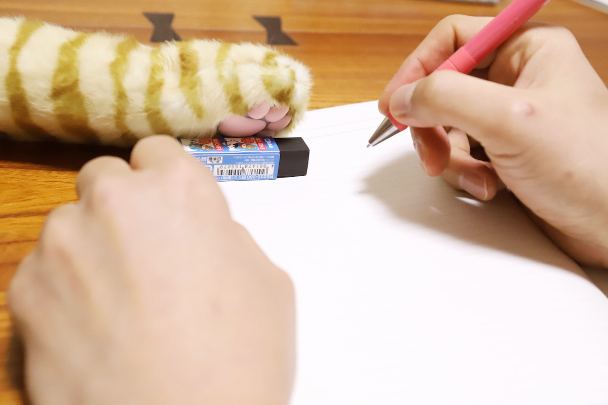 可能なら、いったん自分がこのペンケースを買ったことを忘れるぐらい作業に没頭すると、より効果的。もちろん、ペンケースが勝手に動いたりじゃれたり仕事の邪魔をしたりするわけではないが、ただ猫の手のようなものに対して「猫かな?」と思うだけでも、気持ちが充分に安らぐのは間違いない。猫は猫であるだけで尊いし、なんならもう猫っぽいだけでも充分に良いのだ。