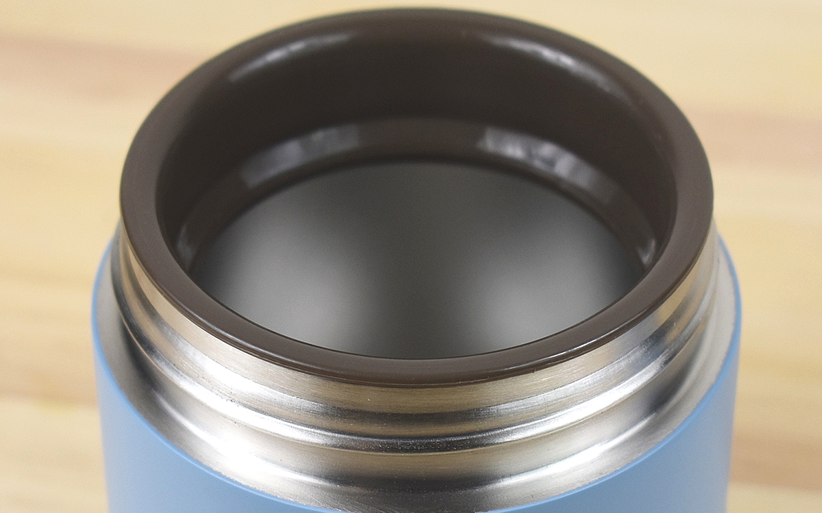 同商品のサイズは約8.2(径)×10cm(高さ)。内瓶にはステンレス鋼が使用されていて、胴部はステンレス鋼にアクリル樹脂塗装が施されています。ちなみに、今回は落ち着いたトーンのブルーカラーを選びましたが、ピンクとアイボリーも展開されているので併せてチェックしてみてください。