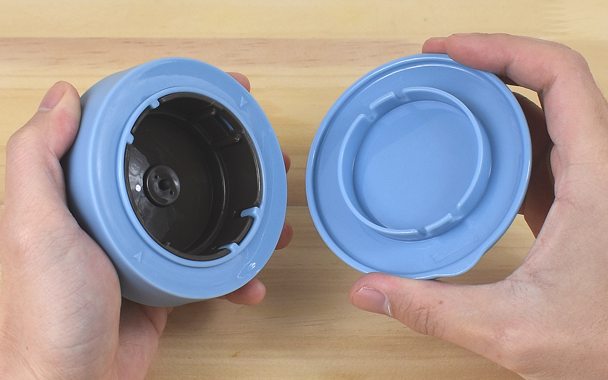 もちろんフタ内にぴたりと収まったせんも取り外しが可能。説明書に従って他のパーツも外していったところ、なんとキャップから本体に至るまで全7パーツに分けることができました。これだけ細かく分解できれば、気になるシミも狙い撃ち。常にきれいなスープポットを使うことができるのではないでしょうか。