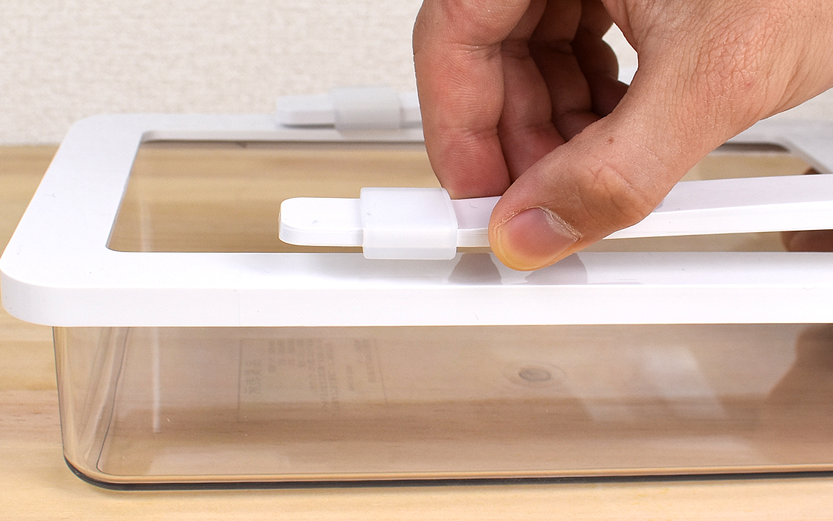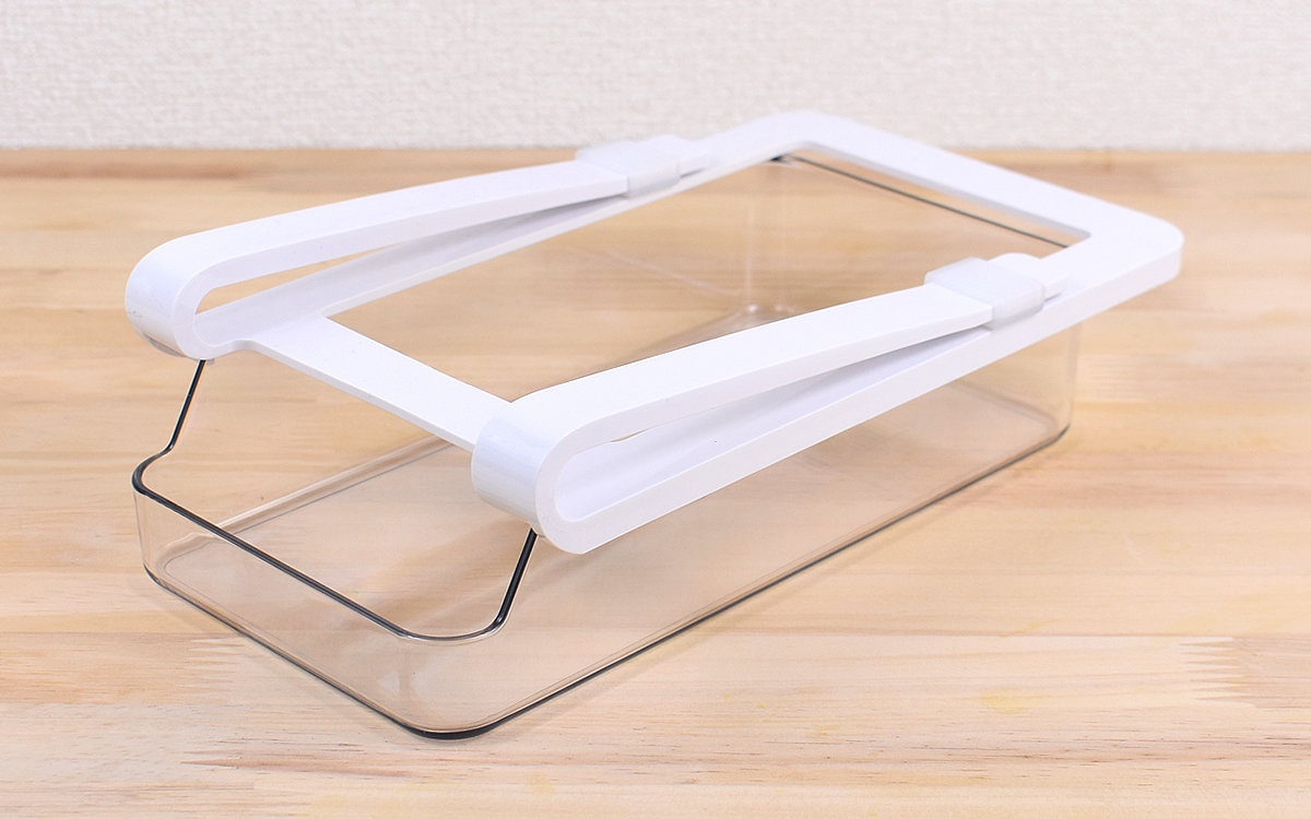 トレー内は想像以上に広々。ちょっと厚みのあるモノを入れてもつっかからず、スムーズにスライドできました。あまり幅を取らないため、一般的な冷蔵庫なら複数買って並べることも可能。トレーごとに中身をジャンル分けすれば、より食材把握がしやすくなってオススメです。
