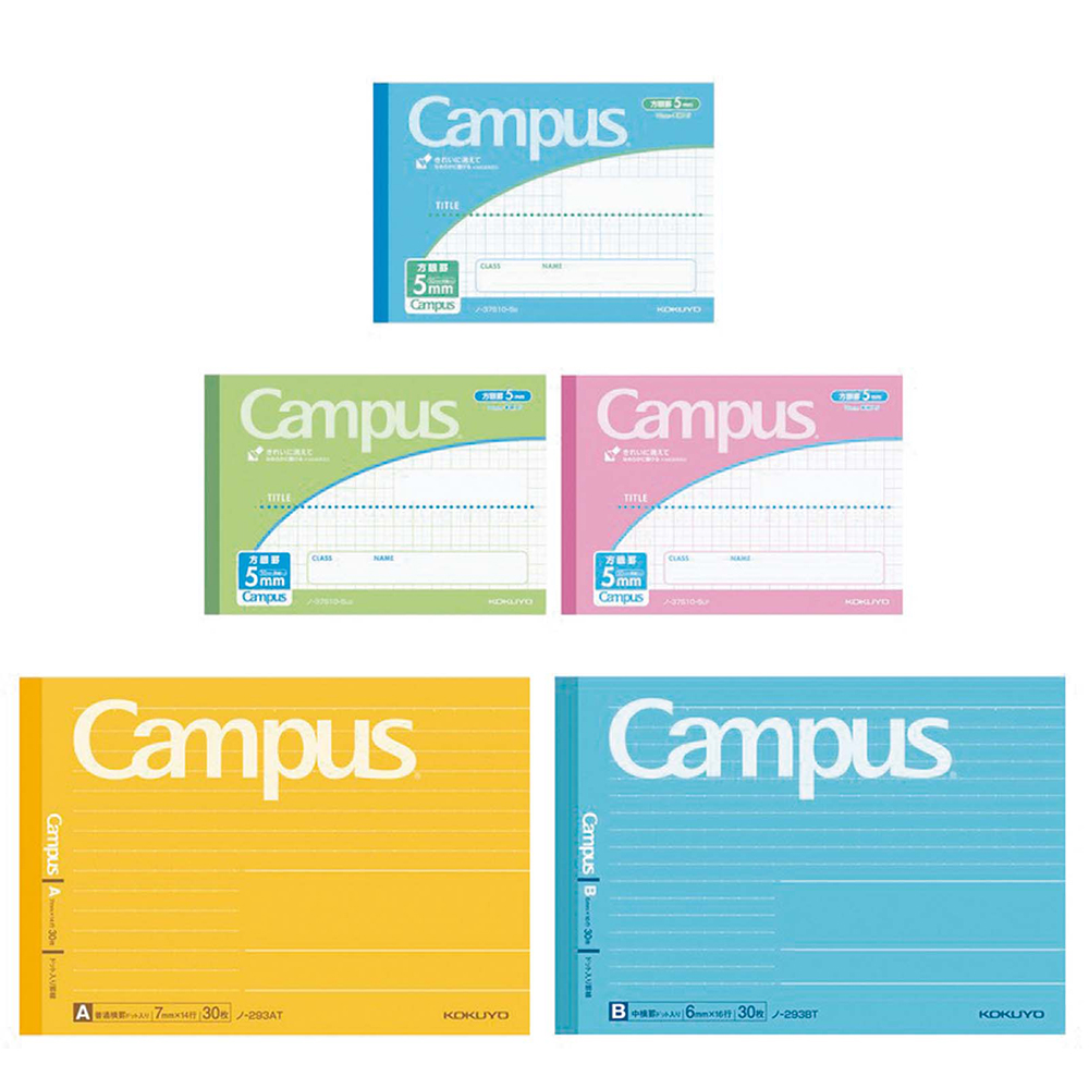 セミB5ノートを半分にしたサイズで、省スペースで使える「キャンパスノート」。ノートがきれいに書ける「ドット入り罫線」と、漢字などが書きやすい小学生用の「方眼罫線」の2種展開だ。