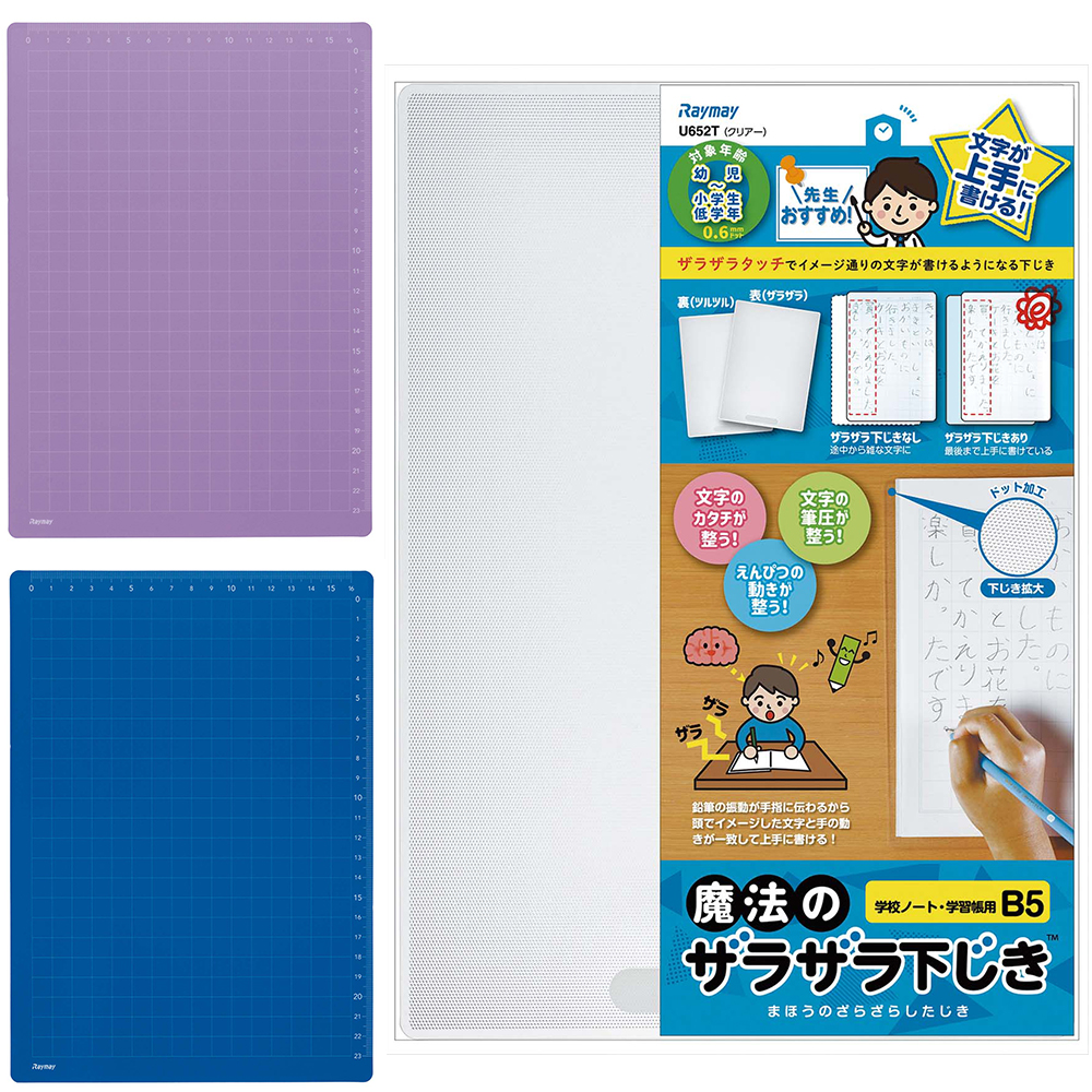 鉛筆を思った通りに動かす力「運筆力」の向上を期待できる、作業療法士監修の下敷き。表面に施された細かなドット加工が、イメージした通りのきれいな文字を書くのを手伝う。
