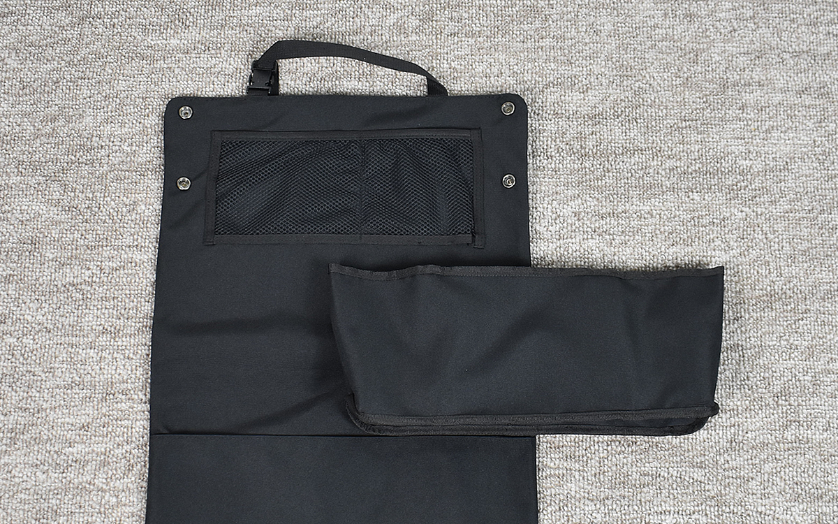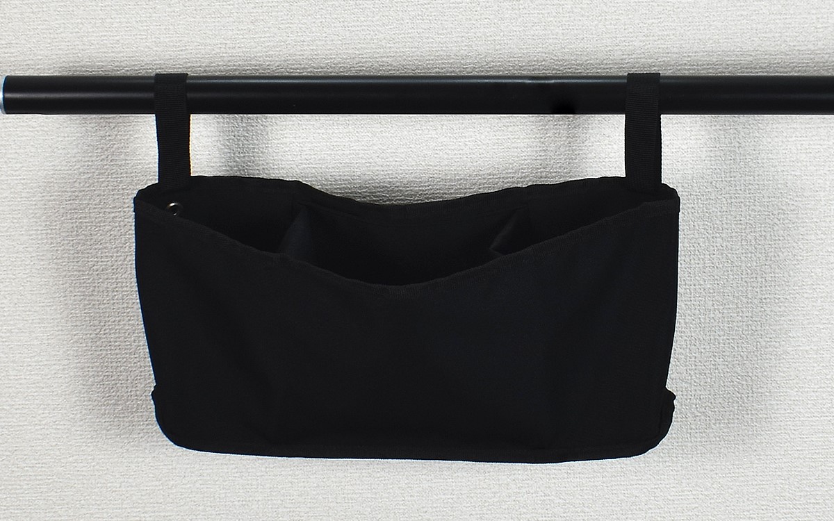 収納ケース正面のメッシュポケットに加えて、単独で吊り下げられる取り外し可能なポーチが付属しているのも注目ポイント。口が広く深さもあるので、たとえばペットボトルやお菓子などを入れて持ち歩く際に便利ではないでしょうか。