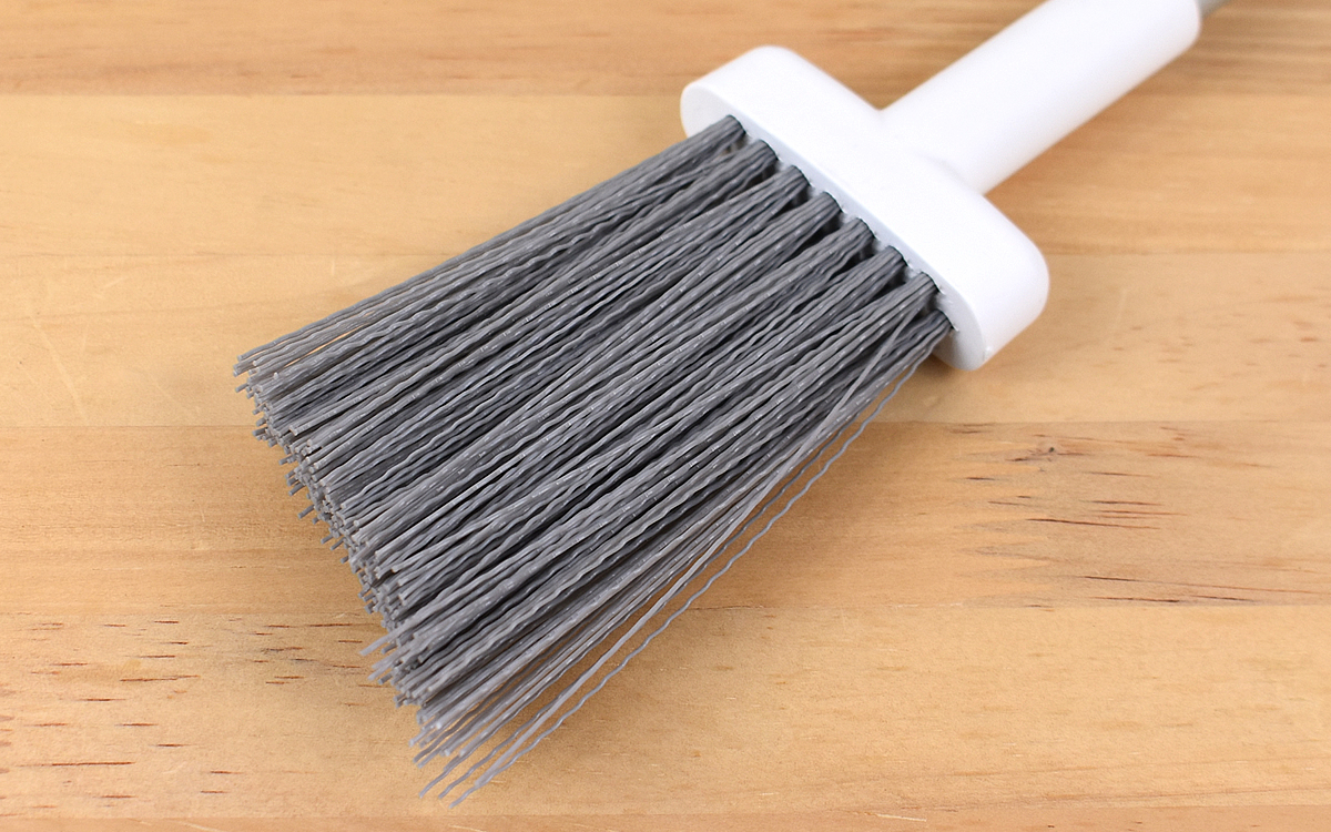 ほうきの先端にはポリプロピレン製の穂がびっしり。少し硬めの細かな穂先がしっかりとホコリを絡めとってくれます。