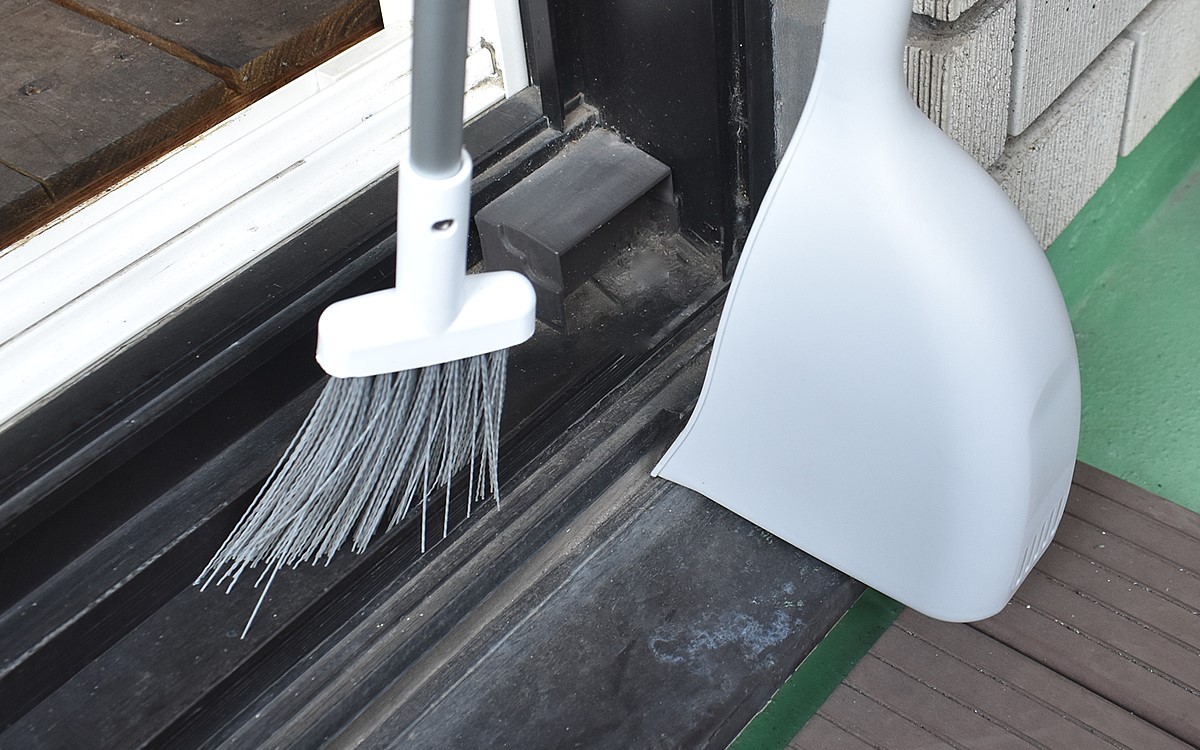 さっそくほうきを使ってみたところ、一般的なほうきに比べて小さい分小回りが効いて快適。細い溝にもきちんと穂先が入りこんでいきました。
