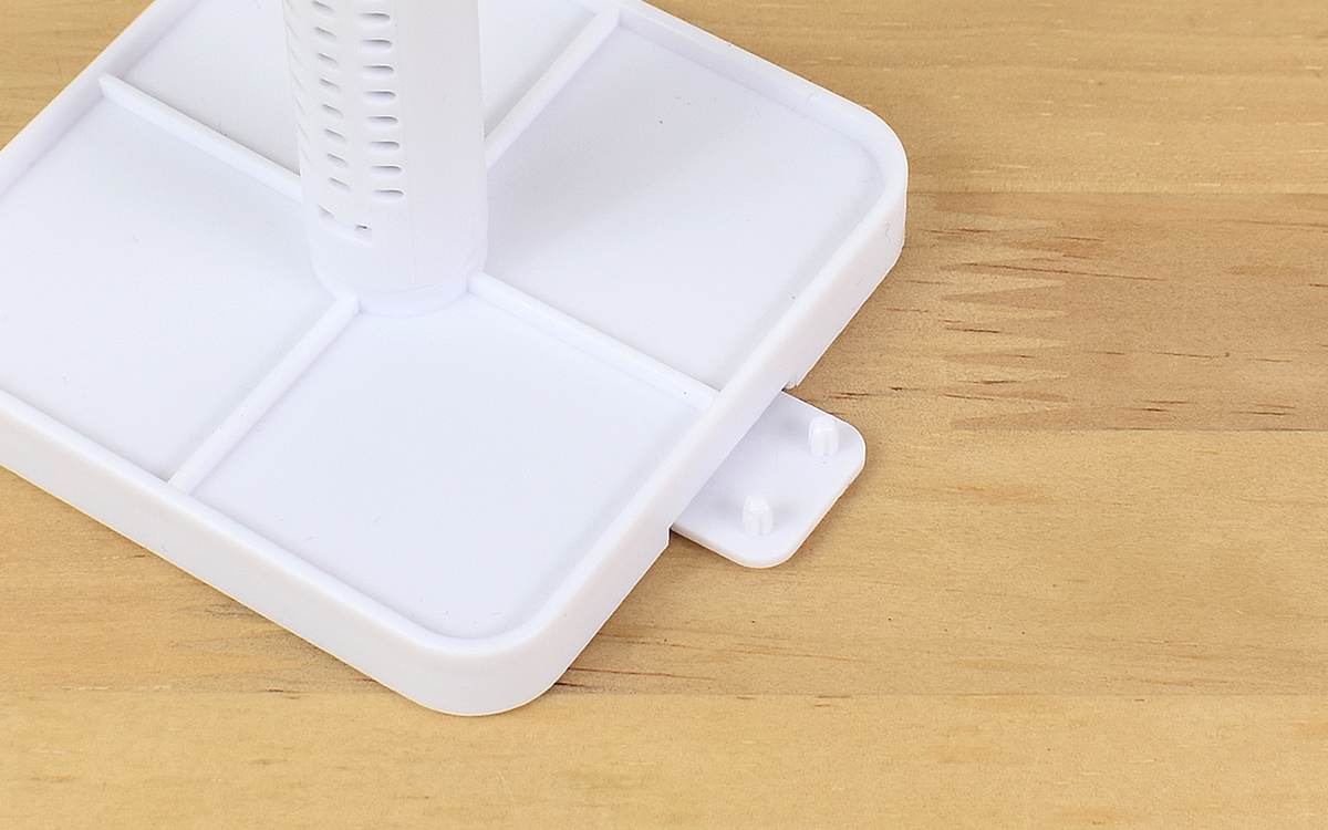 土台に本体を差し込む際は少し力が要りますが、その分しっかりとハマるのでグラグラすることもありません。組み立て後は約8(幅)×8(奥行)×21cm(高さ)ほどの大きさで、場所を取らないのもうれしいポイントですよね。