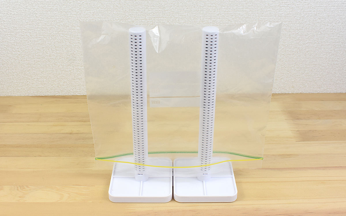 ボトルだけではなく、フリーザーバッグを乾燥させたい時にも同商品が役立ちます。2個連結することで、袋状のものでもしっかり内側を広げて乾かせました。