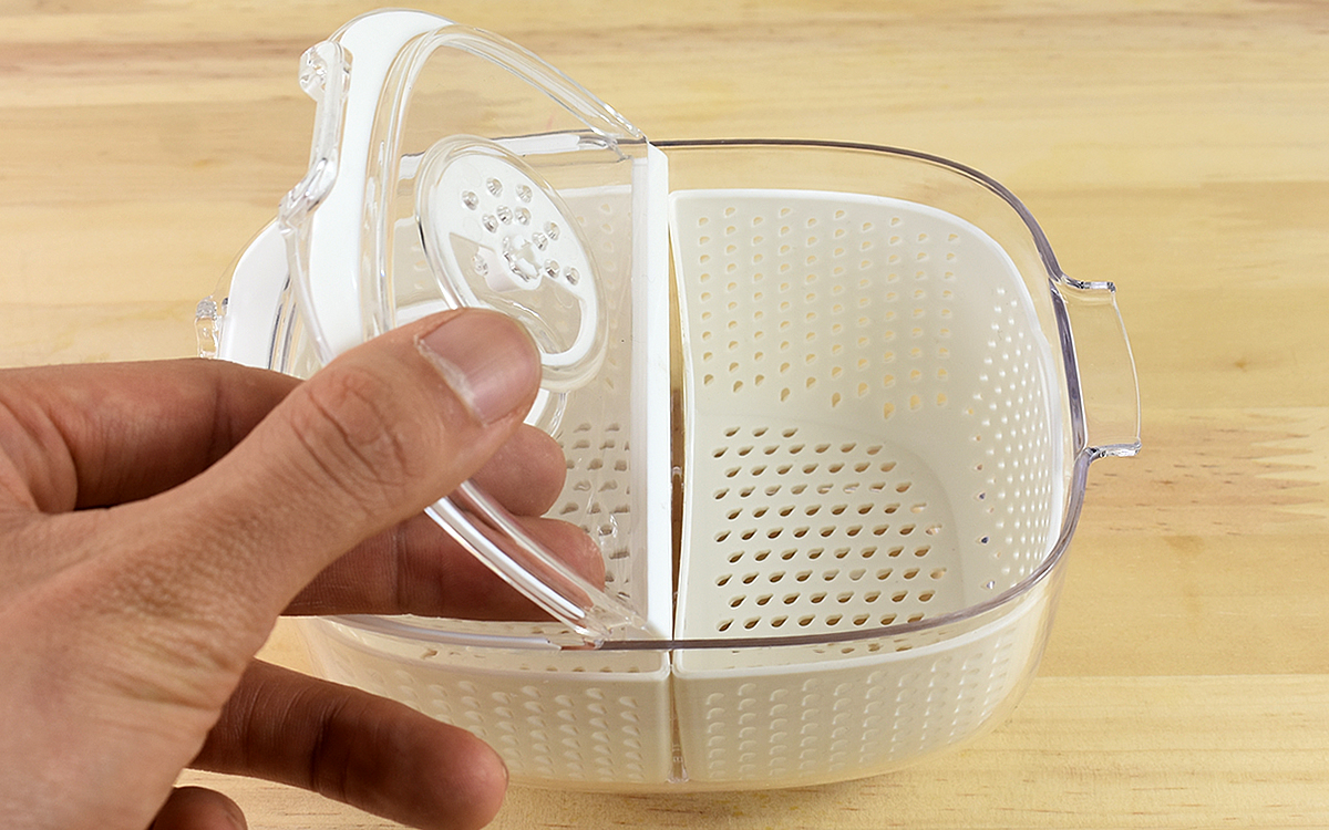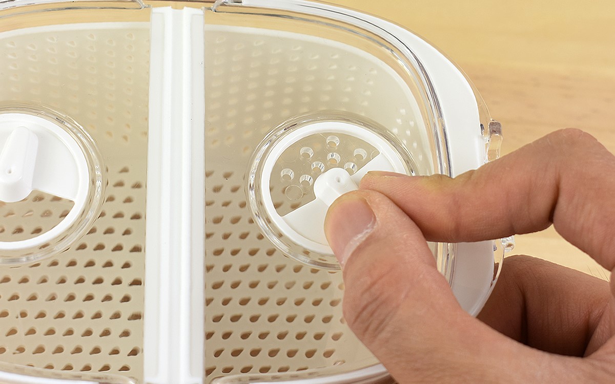 容器のフタは空気の入れ替えができる換気口つき。つまみを回すと簡単に容器内の換気が可能で、日持ちしにくい食材でも新鮮さを保てますよ。