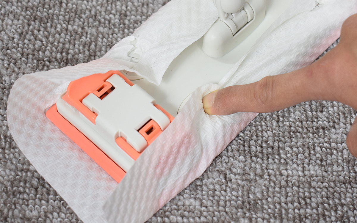 またワイパーの他には1枚の“マイクロファイバークロス”も。マイクロファイバーの特徴は細かい繊維とエッジが鋭いところで、皮脂汚れを残さず除去。シート用の差し込み口もあるので、シーンに合った方法で床清掃をしてみてください。
