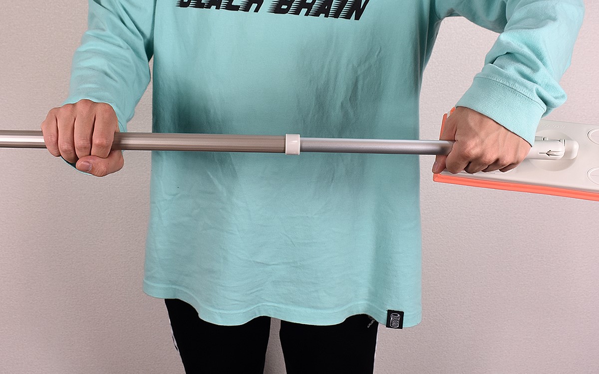持ち手部分は想像以上に握りやすい印象。狭いスペースの奥側まで差し込む時に腕を伸ばしても、手にかかる負担が少なく楽に拭き取れます。クロスの威力も絶大で、軽い力で前後に動かせばホコリや頑固な汚れがキレイに。長さ調節も棒をねじるだけなので、すべての工程において煩わしさが皆無でした。