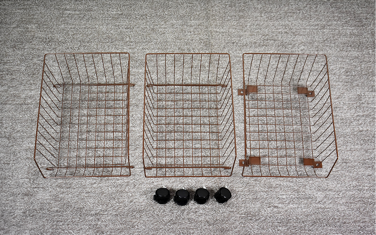 スチール製のバスケットが3つセットになった同商品。バスケット1個の大きさは約29.5(幅)×28(高さ)×38.5cm(奥行)ほどで、A4サイズの雑誌なども楽々と入るサイズ感です。バスケットは3個全部重ねたり、2個だけ重ねて1個は横に添えるなど自由に組み立て可能。自分の部屋のスペースに合わせた置き方ができますよ。