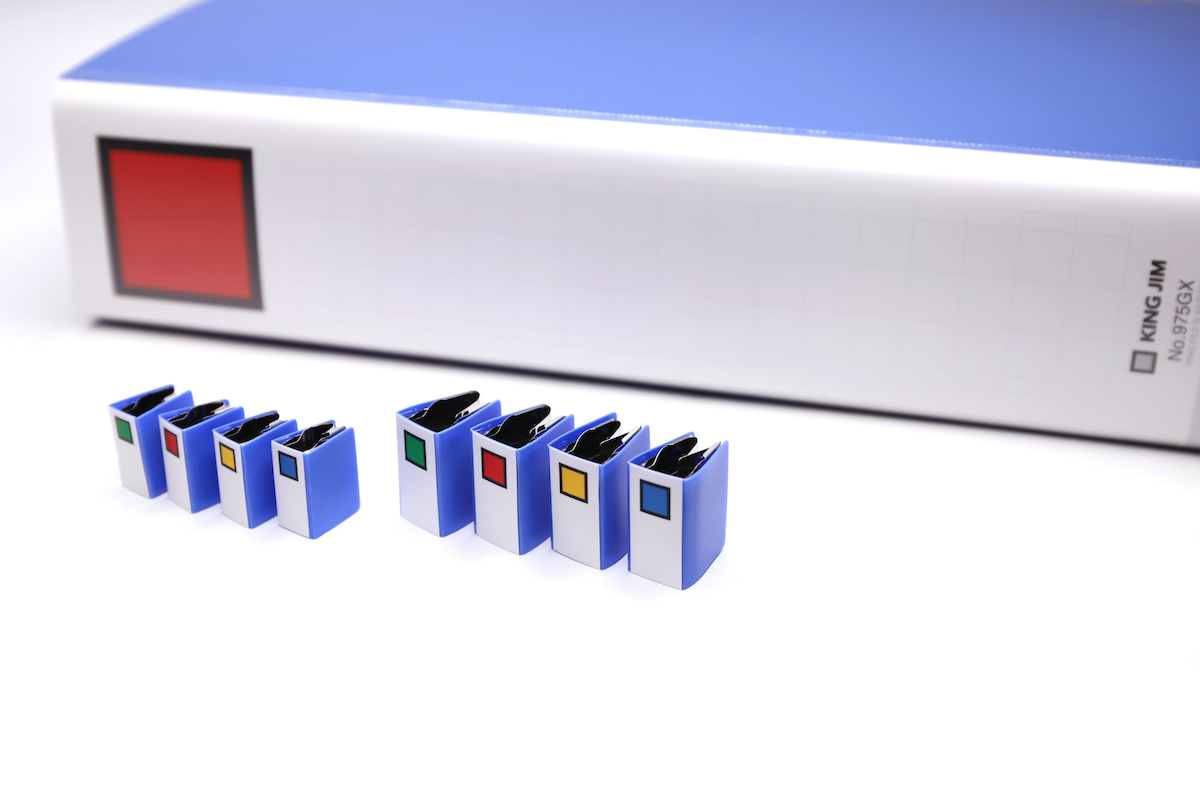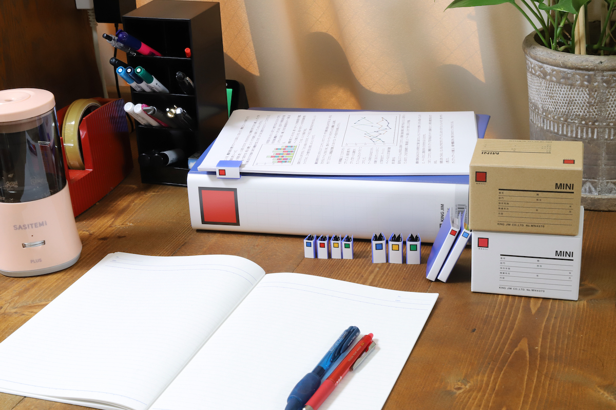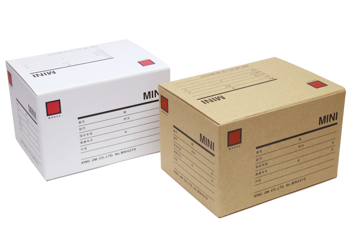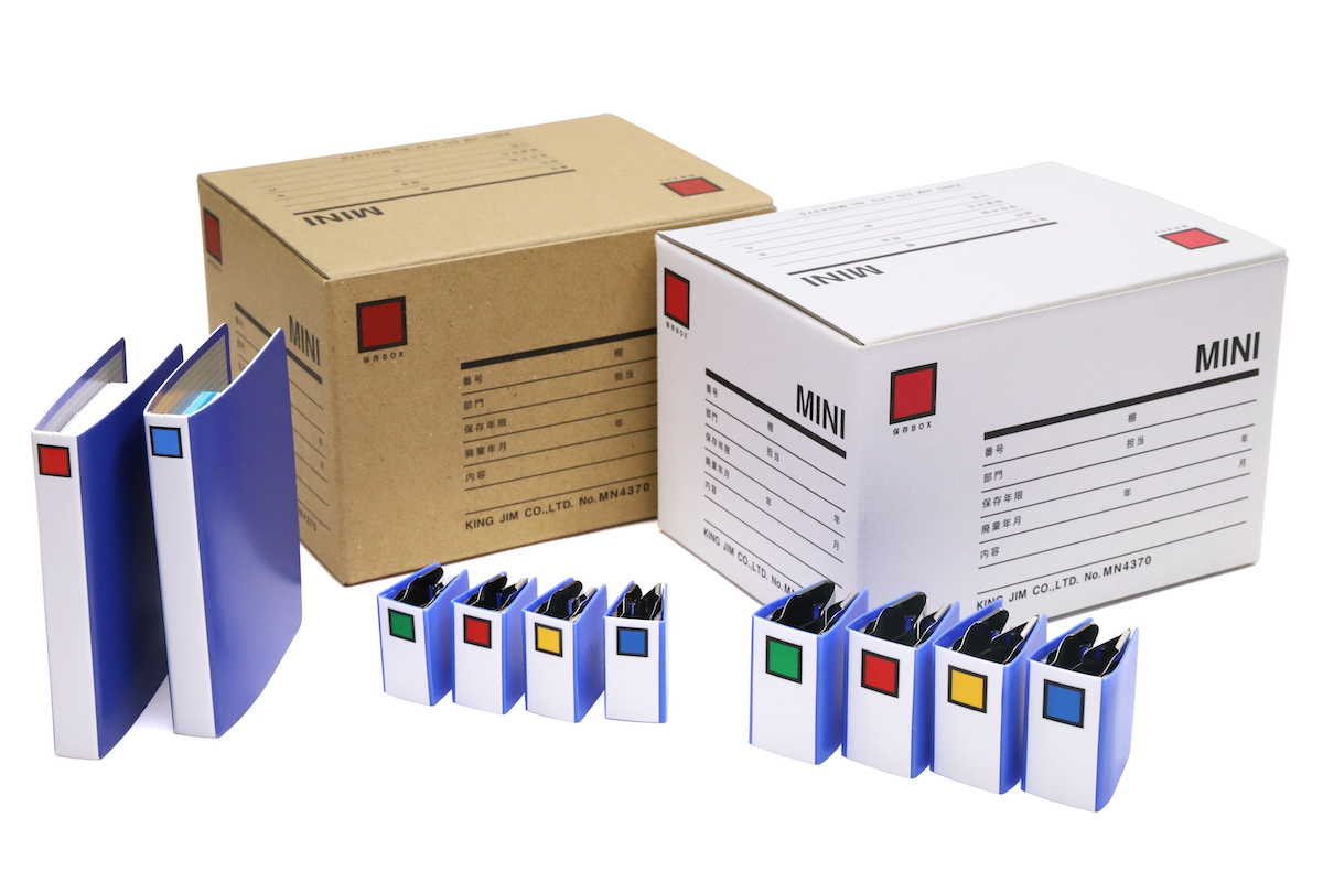 ファイルをまるっと収納しておける保存ボックスは、小型化して「ミニ保存ボックス」になっている。キングファイルほど普段から目立っている製品ではないが、見れば「あー、そういえば会社で資料箱として使ってるわ」と思い出す方も多いのではないか。