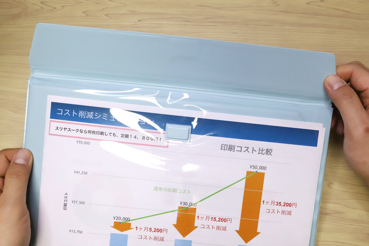 クリアホルダーは書類の出し入れがしやすく便利だけど、「折れる・曲がる可能性がある」「ペラペラすぎてカバンの中で探しづらい」「中身が抜け落ちやすい」……といったネガティブな面がある。逆に言えば、そのあたりを解決できて、かつクリアホルダーライクに使える製品があれば良いのではないか?