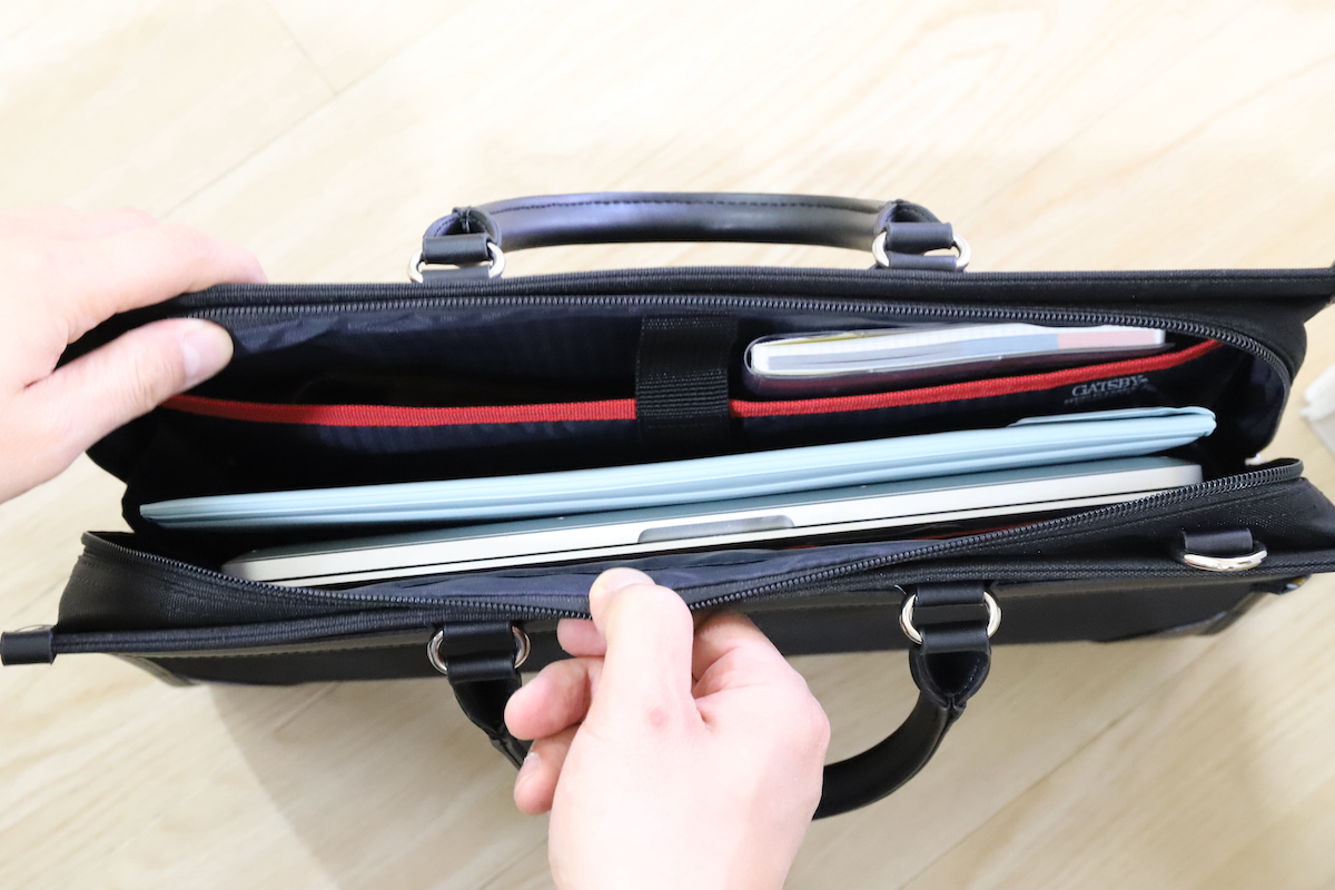 書類を持って出向く先によってカバンを変えるのはよくあることだが、いちいちファイルバッグまでカバンに合わせて変えていては、面倒極まりない。であれば、どちらにもそのまま使える方がいいのは当然という話だ。