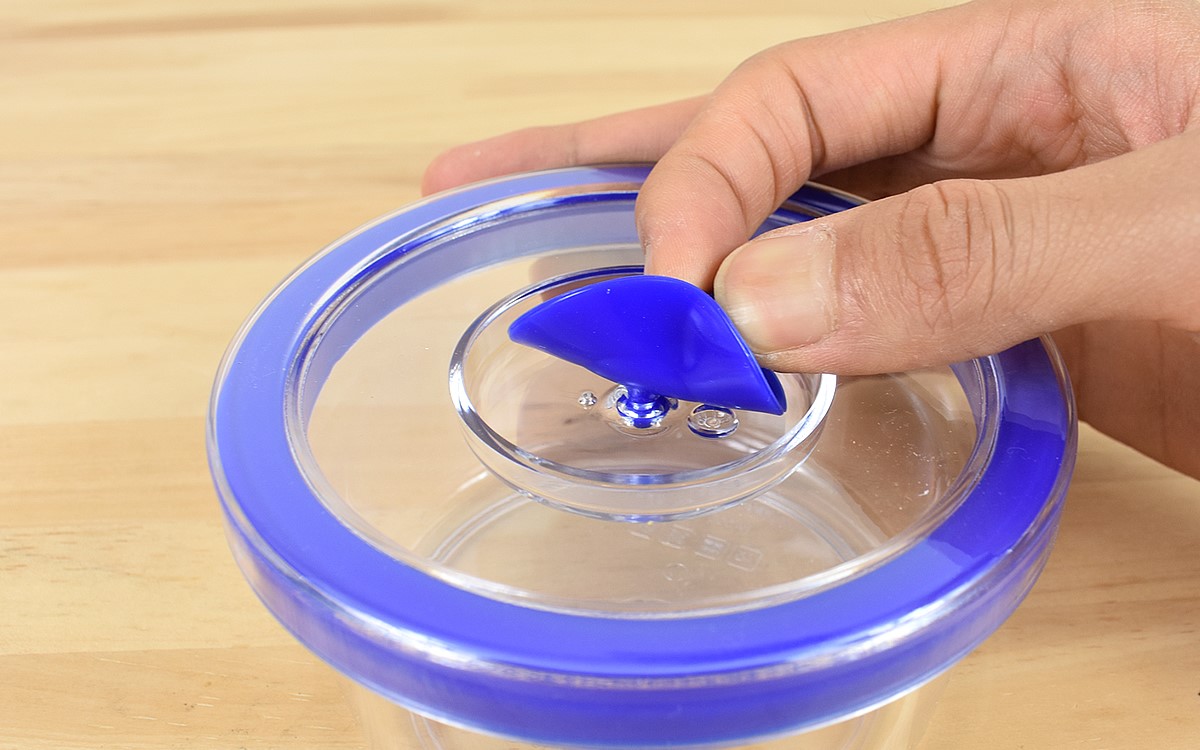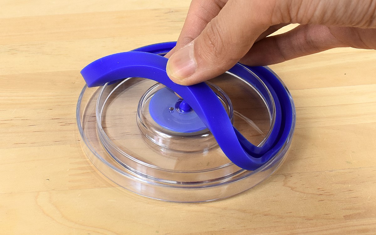 容器が真空状態になったことで、本体とフタがぴたりと密着。どれだけ指でこじ開けようとしても、ビクともしない密閉ぶりに驚かされたほどです。「ガチガチに閉まって開けられるの?」と疑問に感じるかもしれませんが、もちろん心配ご無用。本体中央のゴムをつまみ上げると空気が流入し、簡単にフタを開けることができました。ちなみにフタのパッキンは取り外すことができるので、いつでも容器を清潔に使用できますよ。