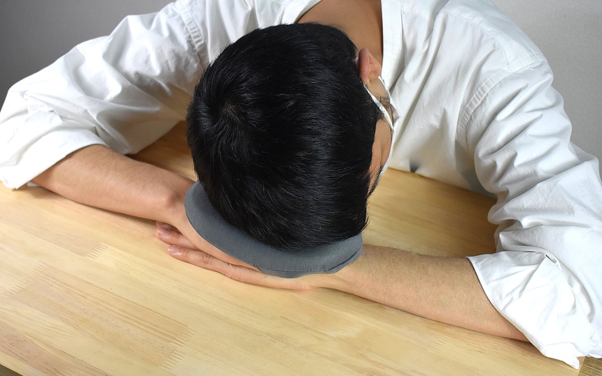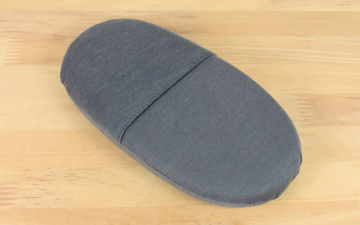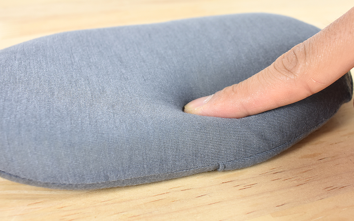 京都芸術大学のプロダクトデザイン学科とコラボして作られた同商品。大きさは約10.5(縦)×2(高さ)×19cm(横)と、一般的な枕よりはグっとコンパクトなサイズ感です。デスク上に置いてあってもさほど邪魔に感じないので、会社に常備するリラックスグッズとしてもうってつけですよ。
