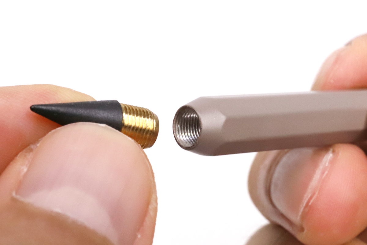 しかし、この6月にサンスター文具から発売された「メタシル」は、まさに現代版メタルポイントペンとして作られたもの。もちろん八角形の軸から芯まで完全フルメタルだ。先端の金属芯は「削ることなく約16kmもの長さを筆記できる」というのが謳い文句となっている。