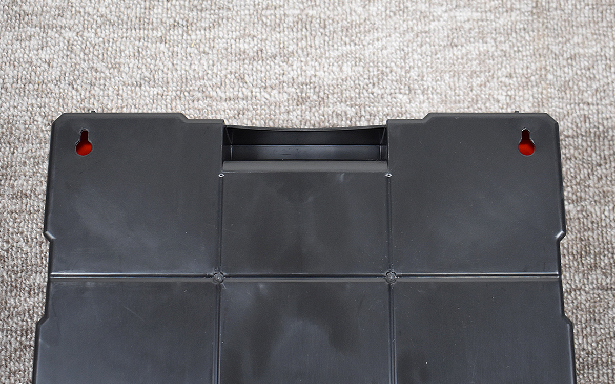 背面には穴が開いており、壁掛け収納として使うことも可能。作業台などにキャビネットを設置するとスペースをとってしまうので、壁に掛けられるのはうれしいですよね。
