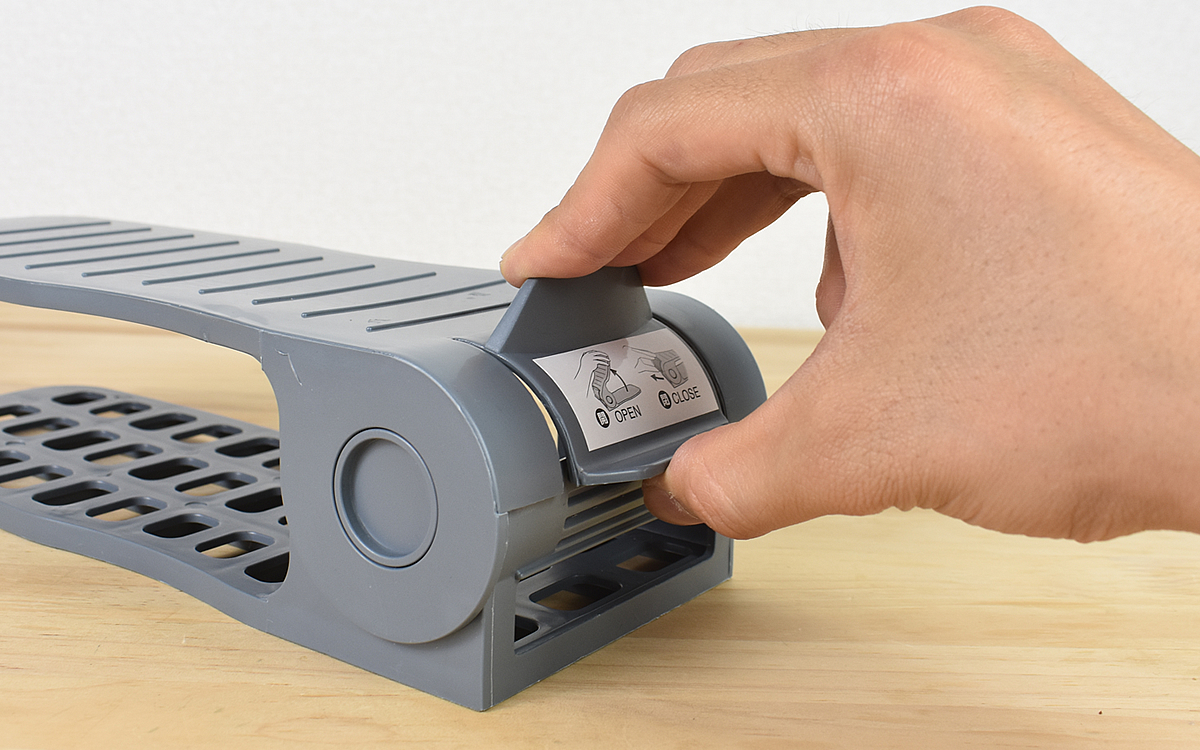 しかし、問題は靴の「高さ」。シューズラックは上下に靴を収納するため、高さのある靴だと下の段に入りきらないという問題がありました。今回の商品が画期的なのは、角度調整機能によって段の高さをコントロールできる点です。
