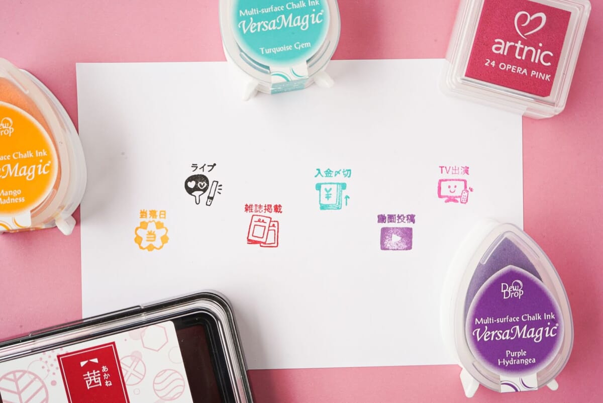 また、推し活スタンプは黒インクでも楽しめますが、アイドルなどメンバーカラーを持つ“推し”がいるならば、スタンプパッドの色にこだわるとより楽しめるでしょう。スタンプパッドの色数は驚くほどに多いので、メンバーカラーがターコイズや深紅などニュアンスのある色でも、推しの色がきっと見つかります。