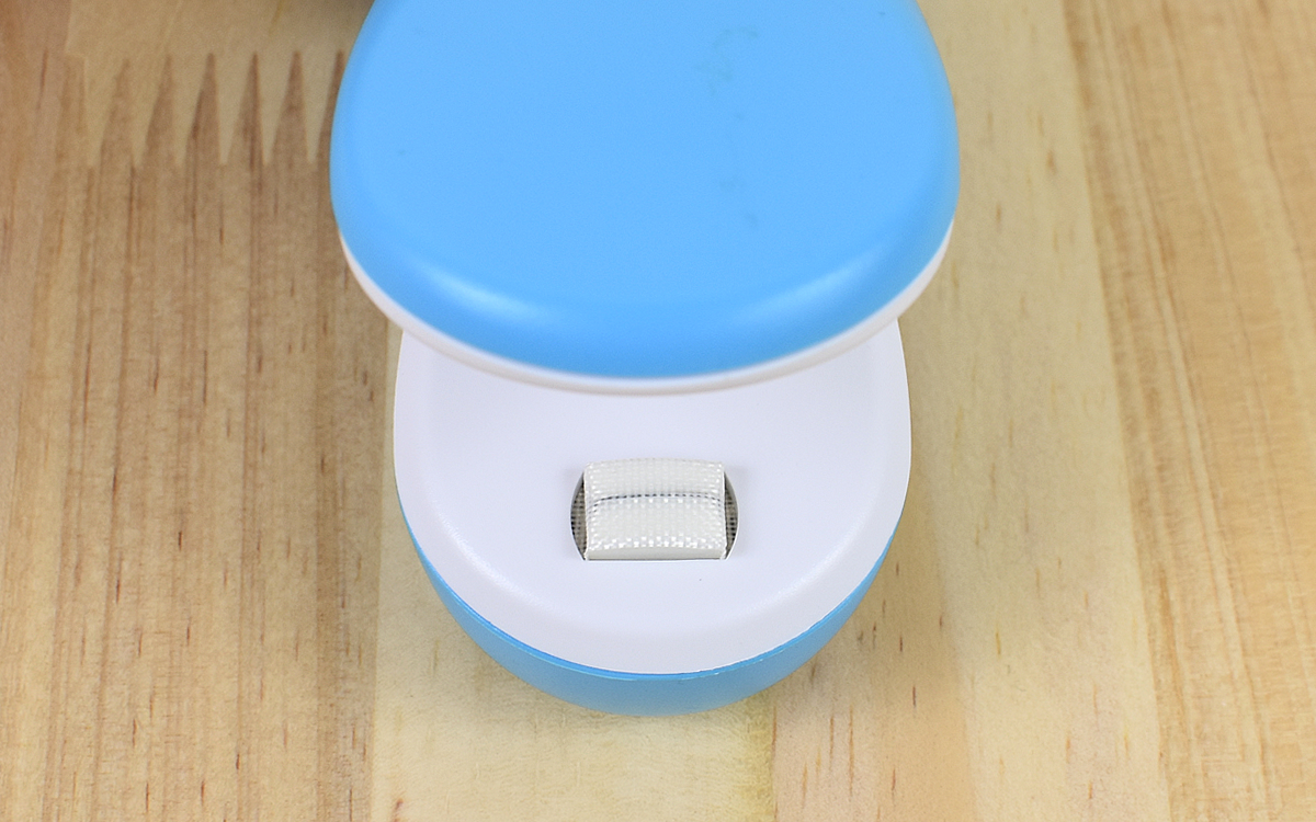 野菜など一度袋を開けた食品は、「すぐ食べなければ!」と焦ってしまいますよね。そこでオススメしたいのが、モノタロウで発見した「ハンディーシーラー カット機能付き」(549円/税込)です。ライトブルー・赤・白の3色があり、今回は爽やかな印象でキッチンに置いても似合うライトブルーを選んでみました。