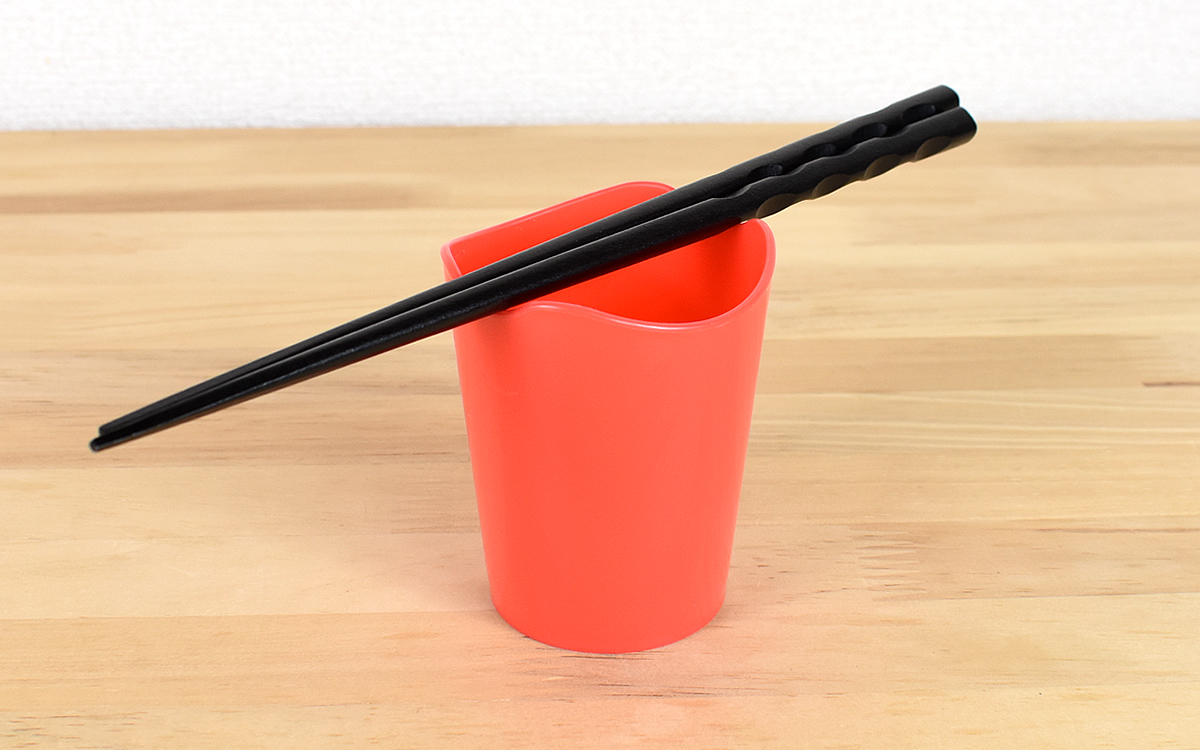 また飲み口が波打っていることで、箸をカップの上に置いて保管できるという利点も。外での食事や食卓に箸置きがない時など、カップに箸を乗せておけばテーブルが汚れず箸も衛生的です。
