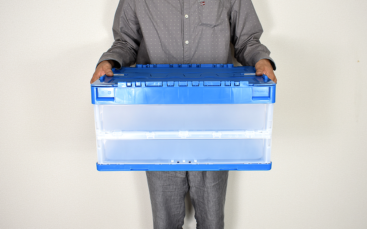 「普段の生活で使用しないモノが多くて、いつの間にか家がモノで溢れかえってしまった…」と感じたことはありませんか? そんな「しばらく使わないモノ」の整理や保管にうってつけなのが、モノタロウの「折りたたみコンテナ フタ一体型タイプ」FCWF40-BL/C(2189円/税込)です。