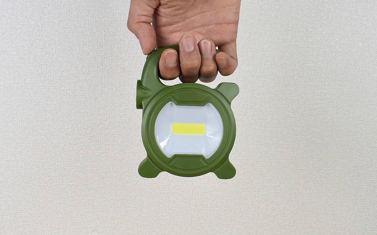 使用してみると電池を3本使っているだけあり、しっかりとした明るさを確保できることがわかりました。ランタン時には100ルーメン、懐中電灯時には70ルーメンの光を放ちます。どれぐらいの明るさかというと、直視していなくても眩しいと感じるほど。持続時間もランタンで約10時間、懐中電灯で約12時間とレジャーの使用には申し分ありません。