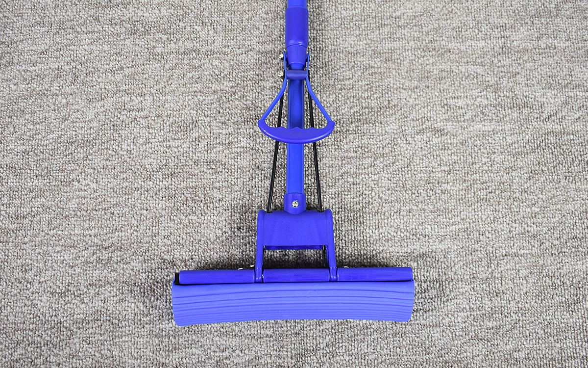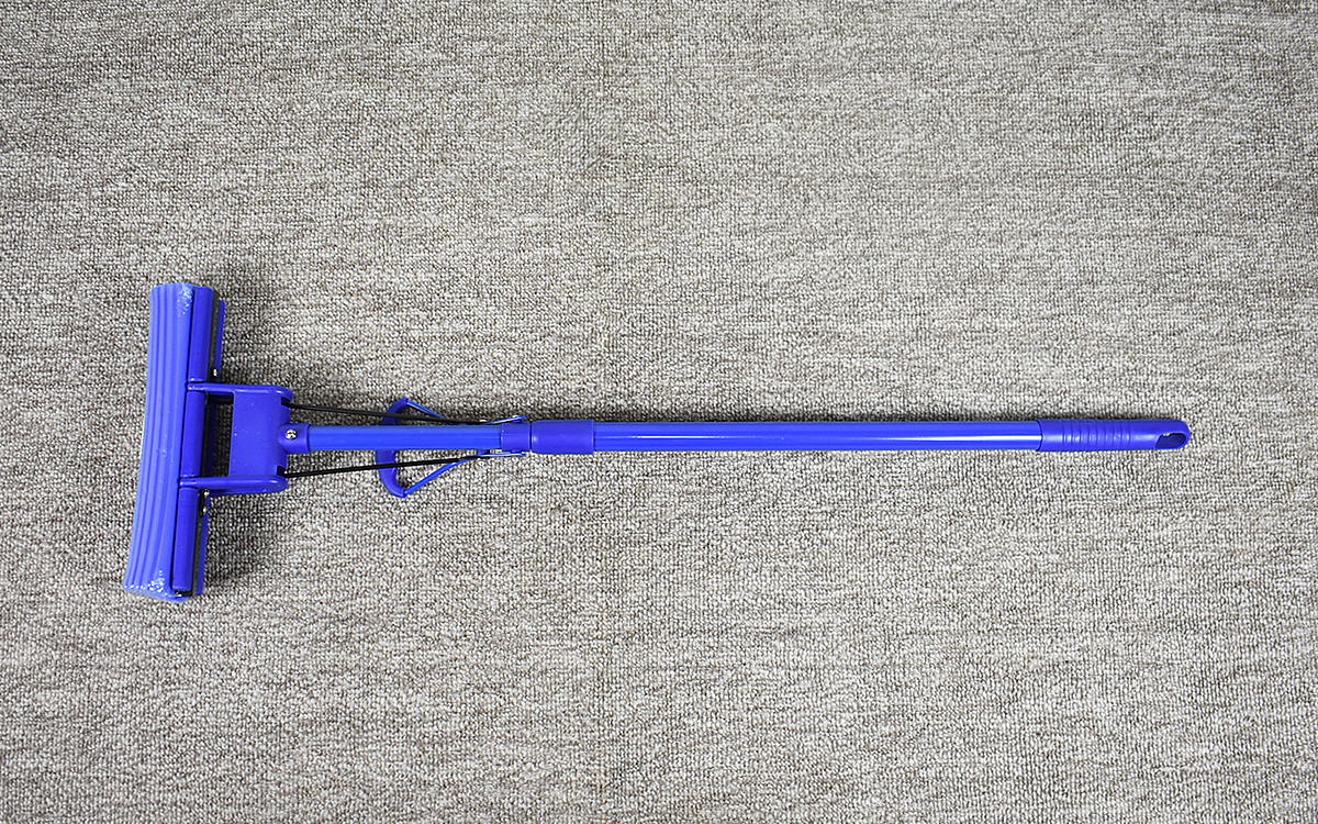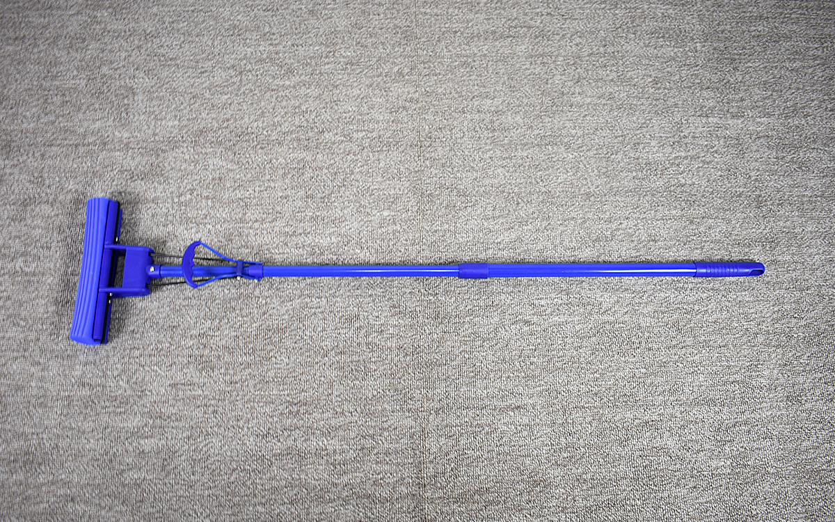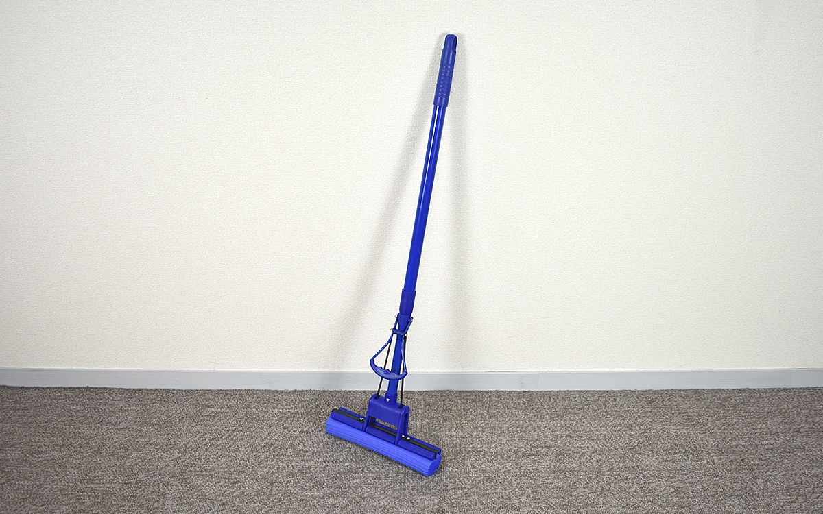 レバーを引くだけで水切りができるモノタロウの「スポンジワイパー ローラー絞りタイプ」。同商品を使って自分の手を汚さないまま、気軽に床拭きしてみませんか?