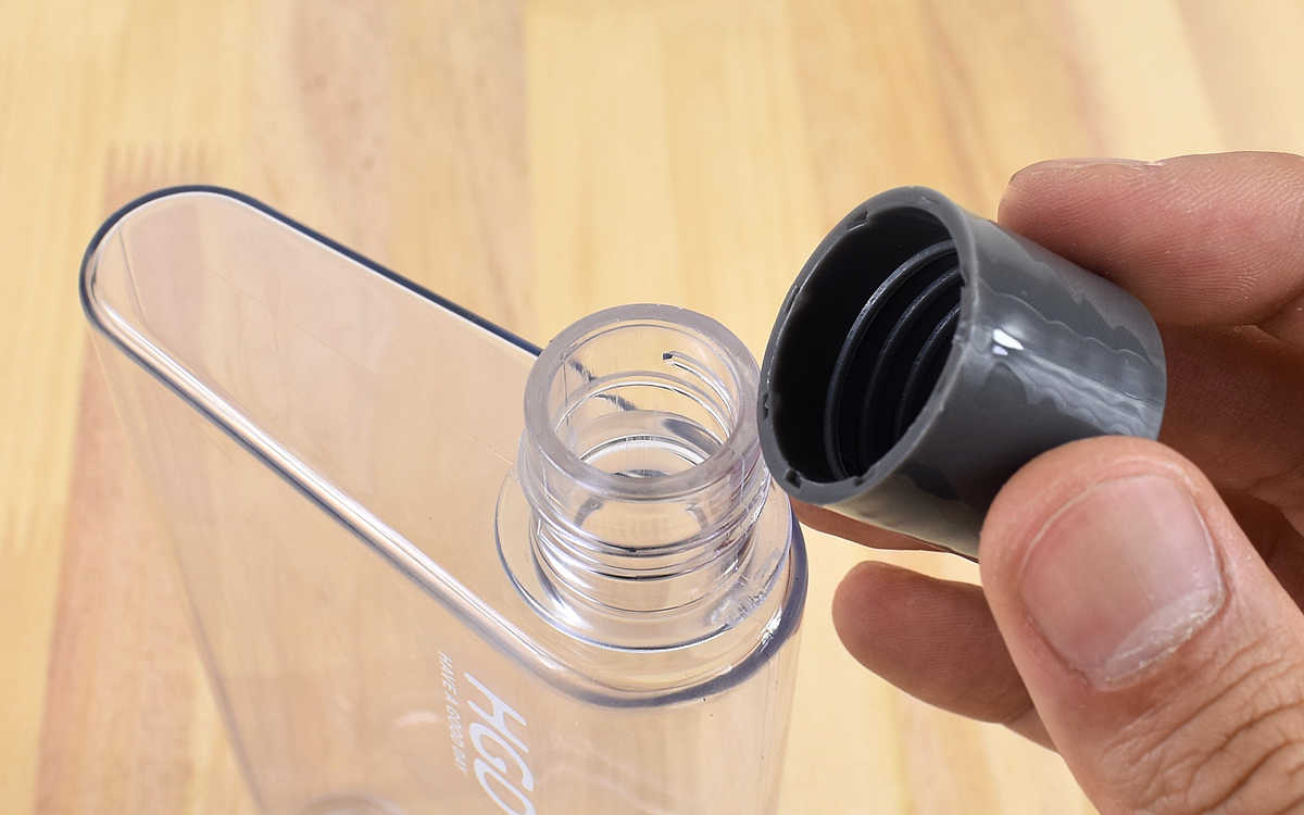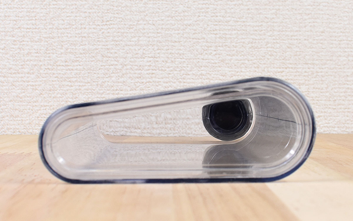ボトルの形状は飲み口付近が一番太く、飲み口から離れるほど細くなっています。飲み口はペットボトルの飲み口よりほんの少し小さい程度。実際に使ってみても、水を入れたり飲んだりする際に「入れにくい」「飲みにくい」といった印象はありません。