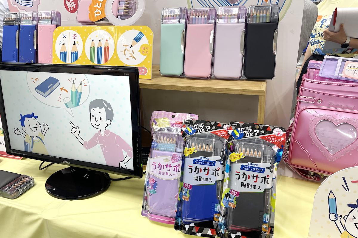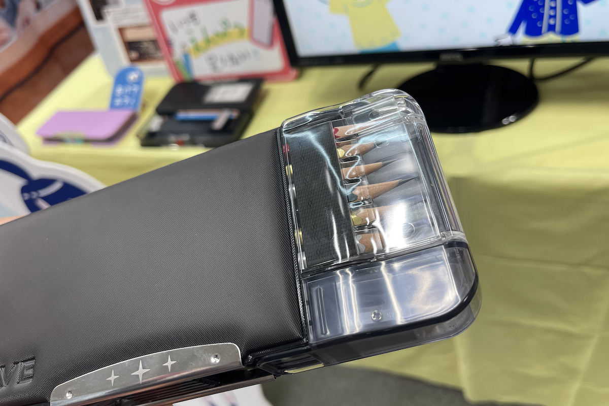 学童文具メーカー(と言いつつ最近は大人向けも強いが)のソニックのブースでは、「うかサポ 両面筆入」(11月発売予定)を前面で大プッシュ。実は、ここ数年かなり激化している学童向けペンケースの新ジャンルとして「鉛筆先端の見える化」を提案してきた。