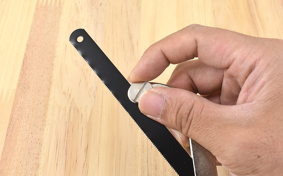 ひとつ注意しなければならないのが、緩めたネジを締めなおすとき。しっかり締めないと刃が遊んでしまいます。ネジ頭の溝に合う、小さめのマイナスドライバーを事前に用意しておくことをオススメします。
