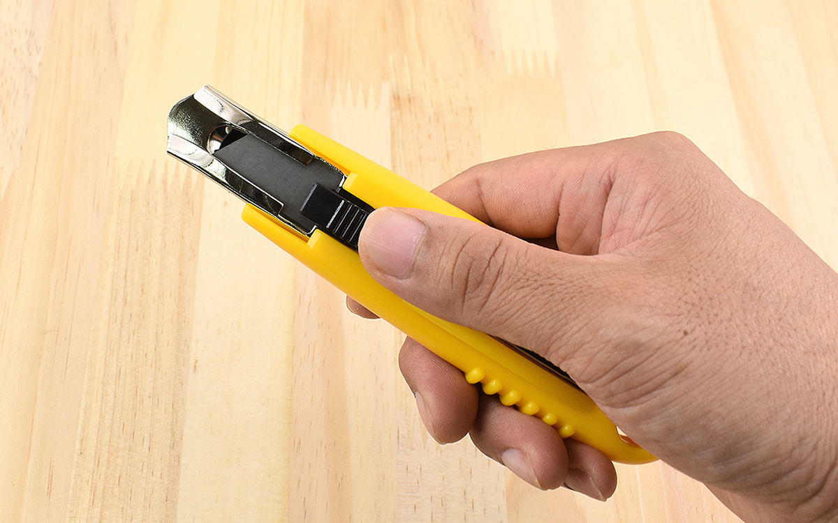 カットが終わり指を外すと、瞬く間にカシャンと刃が元の位置に。本体内に仕込まれたバネはなかなかの強度です。